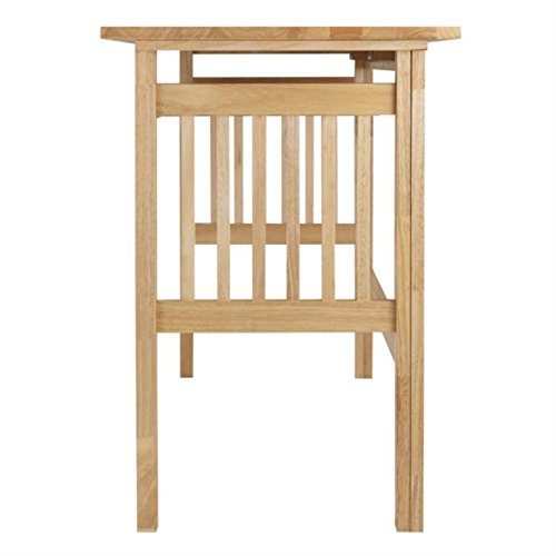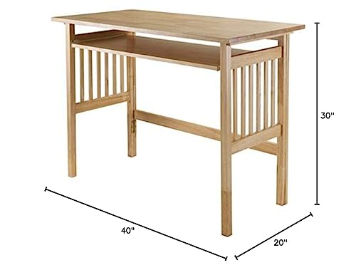 The Ergode Mission Foldable Desk features clean lines and a Natural Wood finish, making it perfect for apartment living, smaller spaces, or a portable home office. The spacious desktop measures 40"W x 20"D, providing ample room for a monitor and working files. The keyboard tray, measuring 33.2"W x 13.7"D, offers space for a laptop or PC keyboard and paperwork. The desk is easily portable, allowing for quick setup or storage. Made of Solid Wood, it has Mission-style side panels and sturdy square legs for durability. The desk can support up to 50 lbs., while the pull-out keyboard tray can hold up to 15 lbs. Assembly is required, and the desk ships in one box with all necessary hardware. Overall dimensions are 40"W x 20"D x 30"H, and the folded dimensions are 40"W x 3.3"D x 33.3"H. The desk weighs 34.8 lbs.