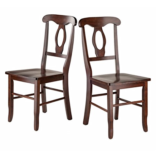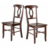 Introduce a touch of French country farmhouse charm to your dining area or kitchen with the Renaissance 2-piece Chair Set. These chairs boast beautifully carved backs with an elegant keyhole design, providing a sophisticated aesthetic. The contoured seats are designed for maximum comfort, making them ideal for dining, occasional use, or extra seating. Crafted from solid wood, these chairs offer exceptional durability and style. Finished in a rich Walnut, the Renaissance chair set effortlessly enhances any decor. With an overall size of 36.6"H x 17.3"W x 21.1"D, these chairs feature contoured seats, gently curved backs, and slightly flared legs for added stability. Made from solid wood with a Walnut finish, assembly is required. The seat height is 17.9"H, seat back height is 19.1"H, and the seat dimensions are 14" to 16.3"W in width and 15.5"D in depth. The overall dimensions of each chair are 17.36" W x 21.14" D x 36.65" H, with a weight of 26.2 lbs.