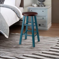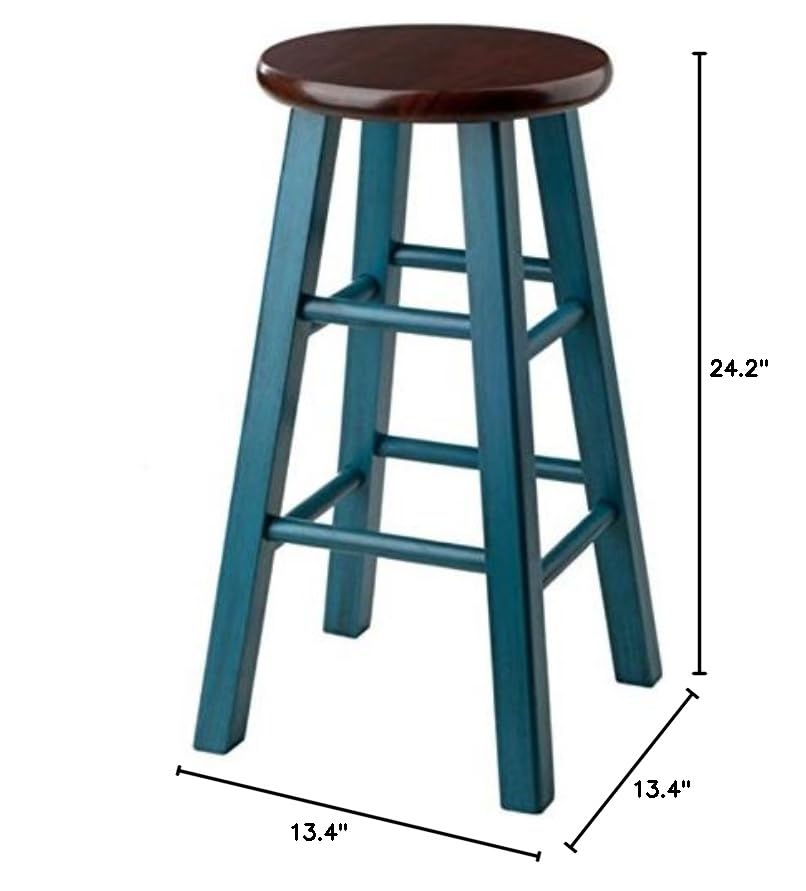 Add charm and vibrancy to your kitchen or family room seating area with the versatile Ergode Wood Ivy 24" Counter Stool. Its sturdy square legs are elegantly finished in a rustic teal, perfectly complementing the 13-inch round walnut seat. This stool offers stability and comfort with high and low crossbars on all sides, making it visually appealing and functional. It serves as ideal extra seating for guests and can also be used as a stand. The rustic edge adds allure, allowing you to showcase small plants, lanterns, or vases. The Ergode Ivy collection offers various rustic washed finishes, and like other Ergode stools, it's available in bar and counter height. Crafted from solid wood, this stool can support up to 220lbs. It comes conveniently packed in one box and requires no assembly. Dimensions: 13.4" W x 13.4" D x 24.2" H, Weight: 8.3lbs.