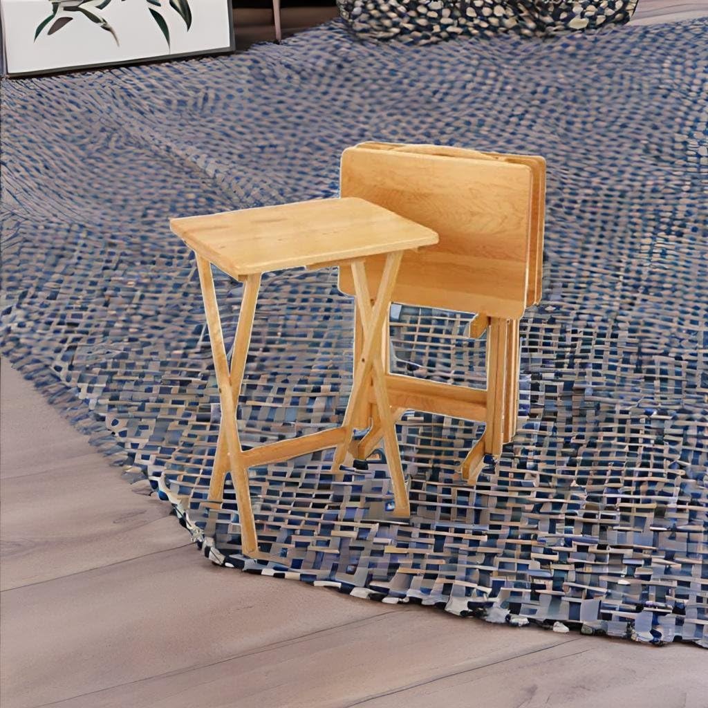 Ergode Wood Alex 5-Piece Snack Tables Set | Foldable & Stable | Solid Wood | Includes 4 Tables & Storage Rack | Clear Lacquer Finish | No Assembly Required for Tables | 19' W x 14.5' D x 25.9' H