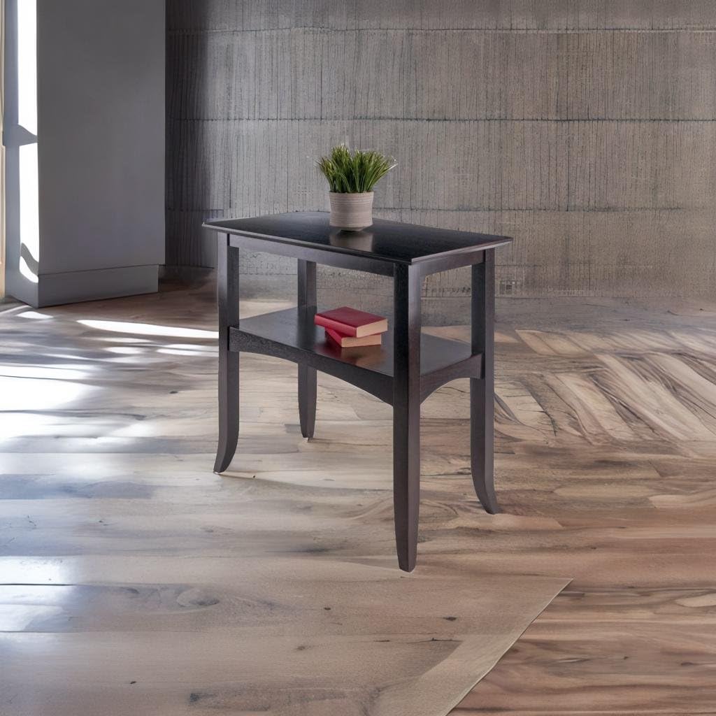 Enhance the sophistication of your living area with the Ergode Wood Camden Console Table. This stunning piece showcases intricate details such as gently flared legs and curved aprons, adding both style and practicality. With a width of 30", it's perfect for compact spaces. The console offers ample surface area and a lower shelf, allowing you to display your treasured possessions. Expertly crafted from sturdy solid wood, it boasts a luxurious Coffee finish that exudes warmth and elegance. Create a cohesive aesthetic by pairing it with other items from the Ergode Camden collection. Assembly is required, and it will be delivered in one box. Dimensions: 30" W x 16.06" D x 29.06" H, Weight: 24.25 lbs.