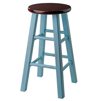 Bring charm and color to your kitchen or family room seating area with the versatile Ergode Wood Ivy 24" Counter Stool. The sturdy square legs are finished in a rustic light blue that complements the 13” round walnut seat. Featuring high and low crossbars on all four sides, for stability and comfort making this stool not only attractive but also very functional. Ideal for extra seating when company comes over, pull up a stool then set it aside and use as a stand. The simple but still appealing rustic edge of this stool allows it to be used as a side piece to display a small plant, lanterns, or a vase. The Ergode Ivy collection is available in other rustic washed finishes and like most Ergode stools it’s available in both bar and counter height. This stool is made of solid wood and has a weight capacity of 220lbs. Conveniently packed and shipped in one box and is ready to use, no assembly is required. . Dimension: 13.4" W x 13.4" D x 24.2" H, Weight: 8.3