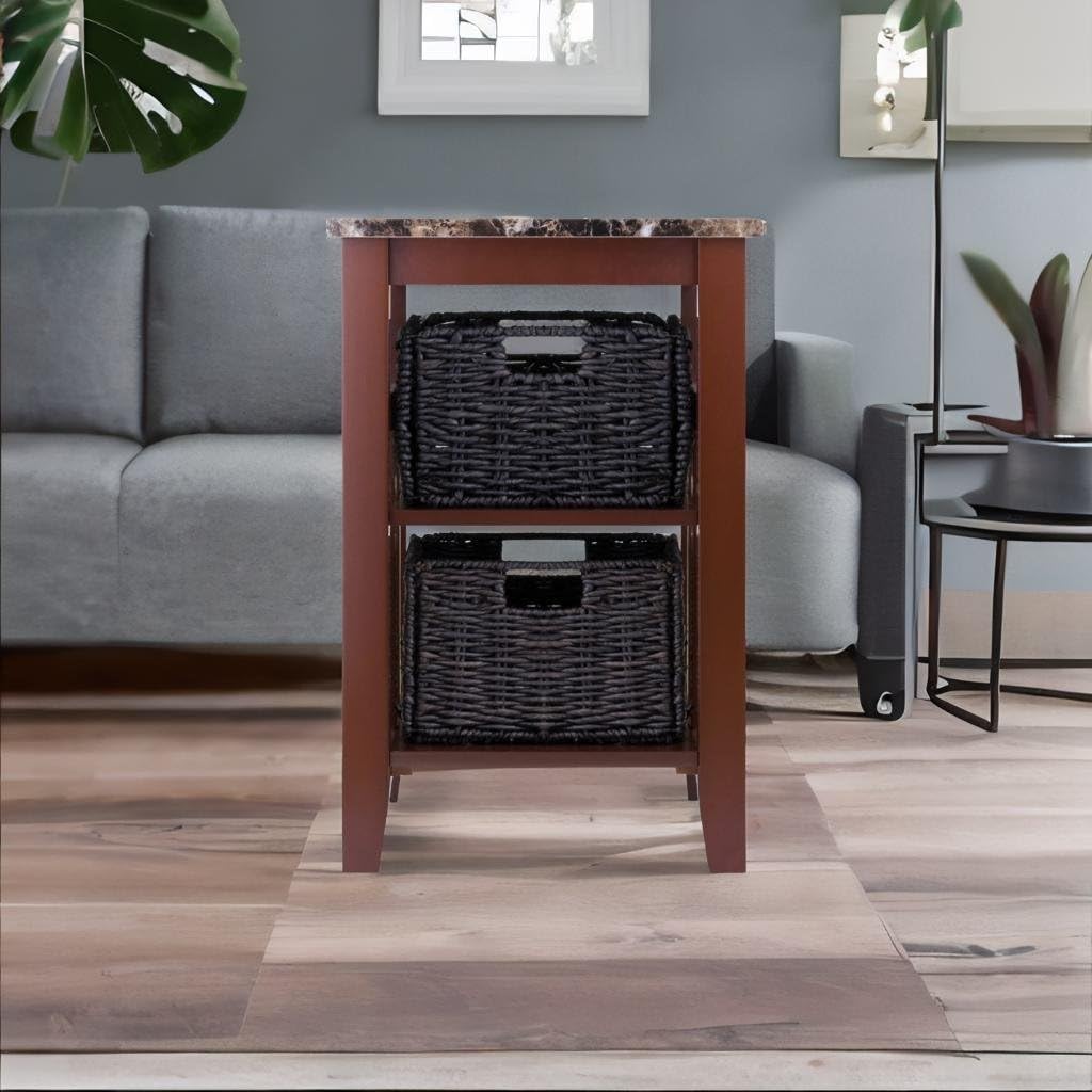 The Ergode Wood Stafford End Table is a perfect blend of classic and contemporary design, making it suitable for any decor. Its mission-like slatted side panels create an open and modern feel with its oyster gray finish. This accent table features one drawer with a beveled silver-finish pull, making it ideal for bedside use or storing personal accessories. The open lower shelf is great for keeping books and magazines. It can be used in the living room or as a printer stand in the home office. The table is made of solid and composite wood for durability. It comes conveniently packed in 1 box with all the necessary hardware for assembly. Replacement parts can be requested within 60 days of purchase. Overall dimensions are 19.9"W x 18.9"D x 22"H, with shelf dimensions of 14.4"W x 17"D and inside drawer dimensions of 8.5"W x 12"D x 2.5"H. The clearance from the lower shelf to underneath the drawer apron is 10.8"H, and the clearance from the floor to underneath the shelf is 4.9"H. The distance between the legs is 14.4"W (front) and 13.5"W (side). Assembly is required, and it ships in 1 box. The table weighs 30.86 lbs.