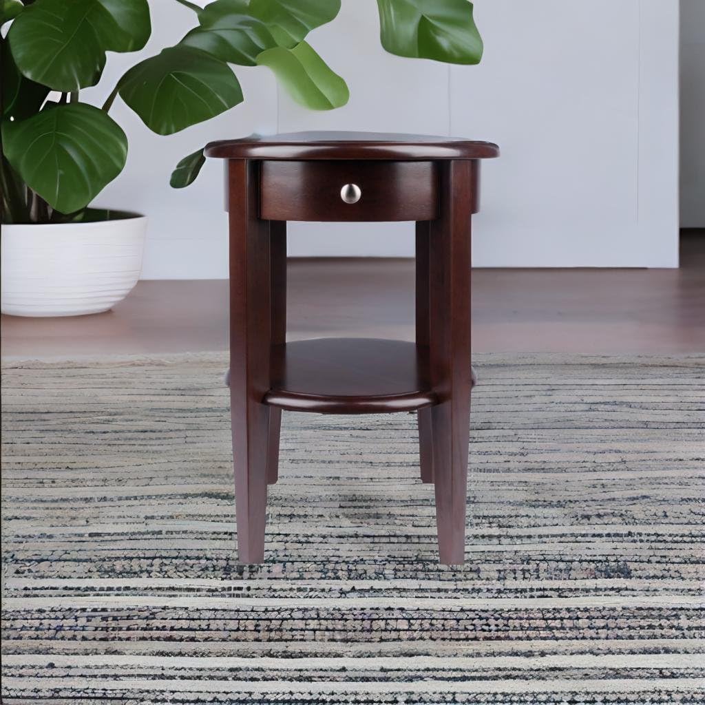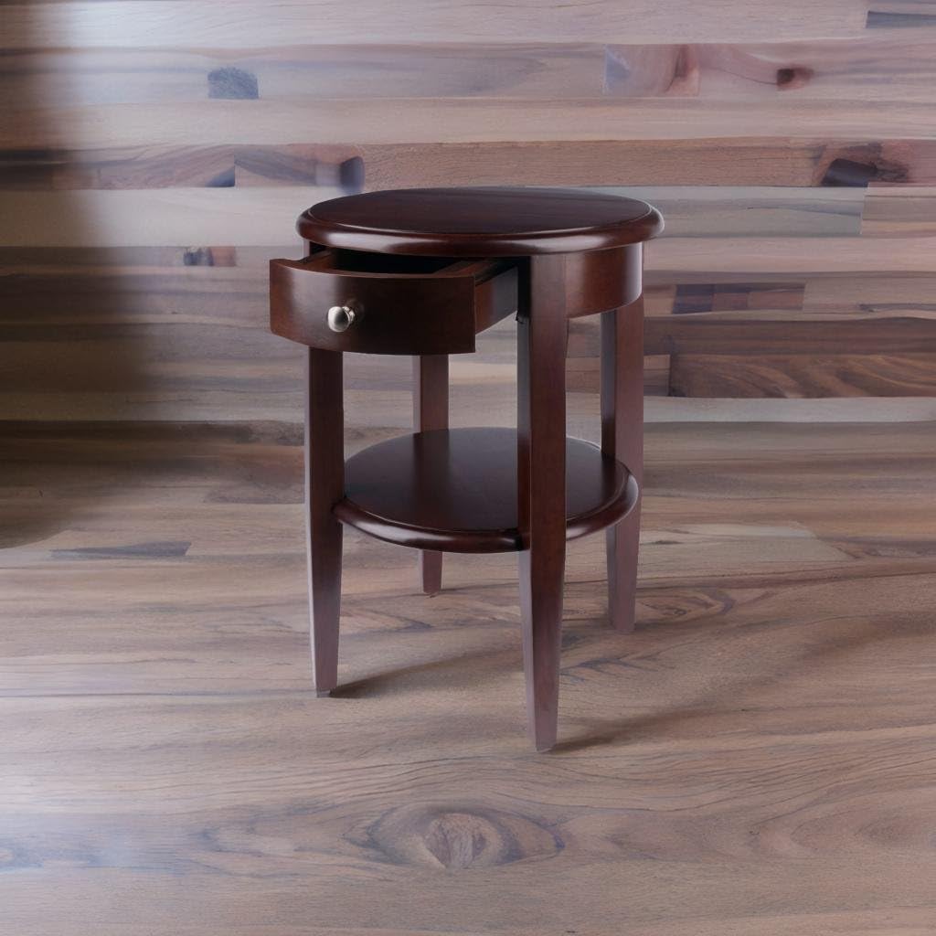 The Ergode Wood Stafford End Table is a perfect blend of classic and contemporary design, making it suitable for any decor. Its mission-like slatted side panels create an open and modern feel with its oyster gray finish. This accent table features one drawer with a beveled silver-finish pull, making it ideal for bedside use or storing personal accessories. The open lower shelf is great for keeping books and magazines. It can be used in the living room or as a printer stand in the home office. The table is made of solid and composite wood for durability. It comes conveniently packed in 1 box with all the necessary hardware for assembly. Replacement parts can be requested within 60 days of purchase. Overall dimensions are 19.9"W x 18.9"D x 22"H, with shelf dimensions of 14.4"W x 17"D and inside drawer dimensions of 8.5"W x 12"D x 2.5"H. The clearance from the lower shelf to underneath the drawer apron is 10.8"H, and the clearance from the floor to underneath the shelf is 4.9"H. The distance between the legs is 14.4"W (front) and 13.5"W (side). Assembly is required, and it ships in 1 box. The table weighs 30.86 lbs.