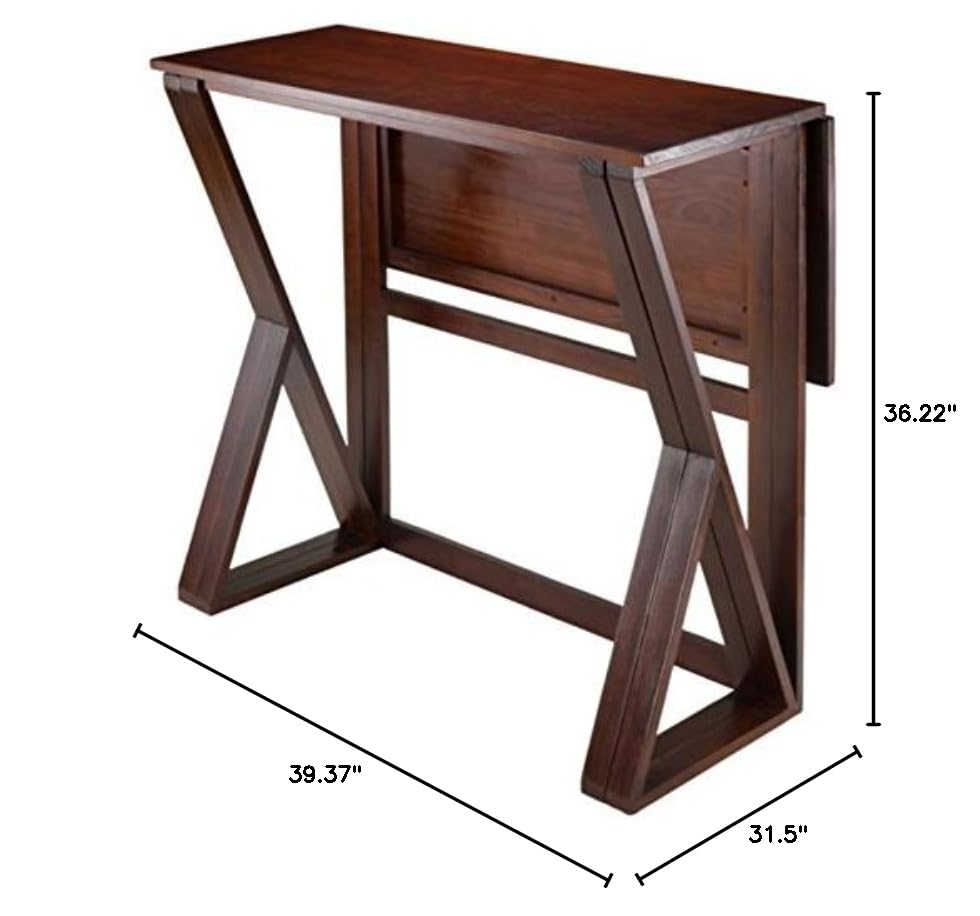 Introducing the Ergode Wood Torrence High Table, a folding round table that instantly provides extra tabletop space. Its unique triangular frame design adds a contemporary touch to any room. When not in use, the table conveniently folds to a slim 3" depth for easy storage. With a diameter of 30", this sturdy solid wood table in oyster gray finish offers ample space for meals or snacks. It's perfect for smaller dining spaces, craft rooms, and even dorms or studio apartments. The table comes with crossbars for added stability and a metal catch to lock the frame in place. You can also create a cohesive dining set by pairing it with stools from the Ergode Wood collections (sold separately). The table is shipped in one box with all the necessary hardware for assembly. If you need any replacement parts, you can contact the manufacturer within 60 days of purchase. The overall dimensions of the table are 30" diameter x 40"H when open and 30"W x 3"D x 48.7"H when folded. The clearance of the larger leg from the bottom crossbar to the apron is 19.4"-23.7"W x 27.5"H, while the clearance of the smaller leg is 17"-20.4"W x 23.7"H. The bottom crossbars are 8.1"-10"H from the ground. Assembly is required. The table weighs 30.86 lbs and measures 30.83" W x 32.36" D x 40" H.