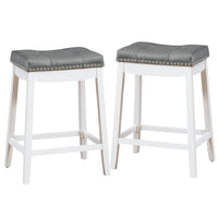 Ergomaster Set Of 4 Cambridge Bar Stools, 24 Inch Counter Stools, Solid Wood Legs Espresso With Gray Pu Cushion For Kitchen Living Room And Bar (Set Of 4,24Inches White Leg