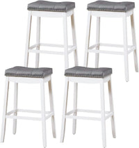 Ergomaster Set Of 4 Cambridge Bar Stools, 29 Inch Counter Stools, Solid Wood Legs Espresso With Gray Pu Cushion For Kitchen Living Room And Bar (Set Of 4,29Inches White Leg