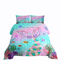 Erosebridal Mermaid Tail Comforter Set,Kids Fish Scales Down Comforter King,Girly Rainbow Bedding Set Ocean Life Sea Animal Quil