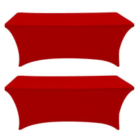 DURABLE & SPANDEX: The stretch spandex rectangular table cover was made from 10% Spandex, 90% Polyester material, wrinkle and stain resistant stretch spandex fabric with a 200 GSM, which make tablecloth more stretchable and durable, does not require ironing and can be laundered countless times. | DESIGN: The fitted 5 feet tablecloth is always fitted and tight. The 4 Way stretchable spandex table covers are designed with reinforced foot pockets for the table legs to make a tight and professional look, and your table cover won't slip around or billow with wind again by this special design.The 5 foot tablecloth fits tables that are 60'L X 30'W X 30'H. | FEATURES & PROFESSION: The 5 feet table covers are stain and wrinkle resistant, uses lightweight tablecloths and durable fabric, which make it's convenient for you to take anywhere and handle with ease for all events. You can place something under the table cover for a clean look. | OCCASIONS: We prepared many color options for you, the table cloths must be your best choice as party tablecloths, wedding tablecloths, vendors, buffet table cloths, banquet table covers, tradeshow table cloths, our table cover can also be used in hotel receptions, vendor, craft fair displays, jewelry shows display ,buffet, the dessert, display, buffet, DJ, etc. It works better and more beautiful than traditional tablecloths. | EASY TO CARE: Machine washable with water (cold or room temperature) in gentle cycle. Use normal detergent. Bleach is not recommended. Don't wash with other materials. Wash like colors together. Tumble dry with low temperature. Avoid overloading the machine and make sure that both the washer and the dryer are in good working order. Gradually dry in dryer to avoid temperature shock.
