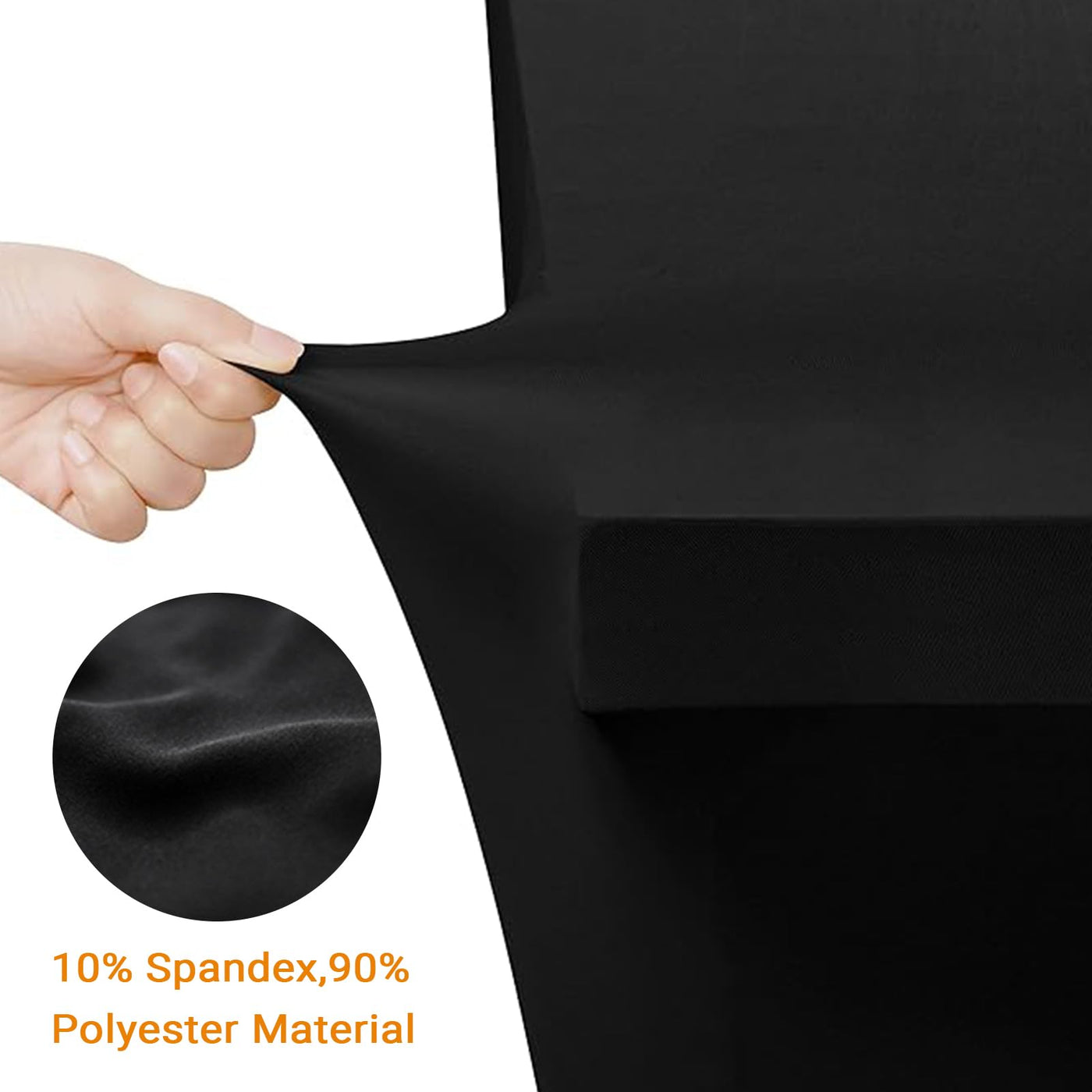 DURABLE & SPANDEX: The stretch spandex rectangular table cover was made from 10% Spandex, 90% Polyester material, wrinkle and stain resistant stretch spandex fabric with a 200 GSM, which make tablecloth more stretchable and durable, does not require ironing and can be laundered countless times. | DESIGN: The fitted 6 feet tablecloth is always fitted and tight. The 4 Way stretchable spandex table covers are designed with reinforced foot pockets for the table legs to make a tight and professional look, and your table cover won't slip around or billow with wind again by this special design.The 6 foot tablecloth fits tables that are 72'L X 30'W X 30'H. | FEATURES & PROFESSION: The 6 feet table covers are stain and wrinkle resistant, uses lightweight tablecloths and durable fabric, which make it's convenient for you to take anywhere and handle with ease for all events. You can place something under the table cover for a clean look. | OCCASIONS: We prepared many color options for you, the table cloths must be your best choice as party tablecloths, wedding tablecloths, vendors, buffet table cloths, banquet table covers, tradeshow table cloths, our table cover can also be used in hotel receptions, vendor, craft fair displays, jewelry shows display ,buffet, the dessert, display, buffet, DJ, etc. It works better and more beautiful than traditional tablecloths. | EASY TO CARE: Machine washable with water (cold or room temperature) in gentle cycle. Use normal detergent. Bleach is not recommended. Don't wash with other materials. Wash like colors together. Tumble dry with low temperature. Avoid overloading the machine and make sure that both the washer and the dryer are in good working order. Gradually dry in dryer to avoid temperature shock.