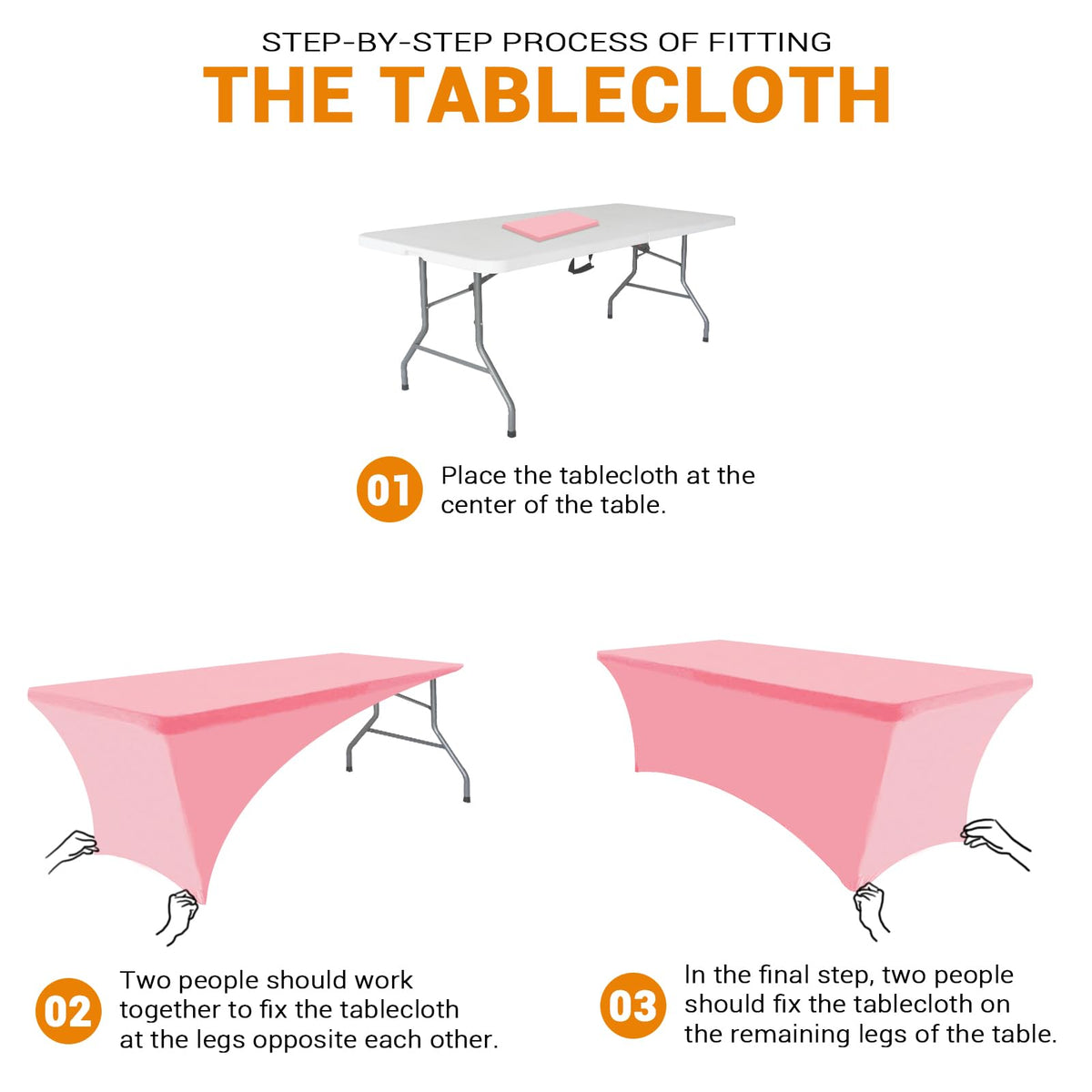 Our 6 feet rectangular stretch tablecloth offers a modern, contemporary look. The sleek, clean lines of our stretch tablecloths are perfect for your wedding, reception, special event or trade show. Stretch table covers are machine washable and stain and wrinkle resistant. Our fitted rectangular stretch tablecloths are made from a stretch polyester material similar to the look and feel of Spandex but are much more affordable. These tablecloths feature a 'pocket' with reinforced plastic designed for the insertion of each table leg to hold the tablecloth securely in place.