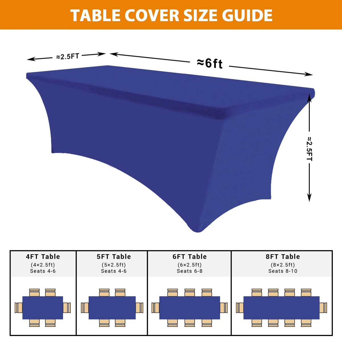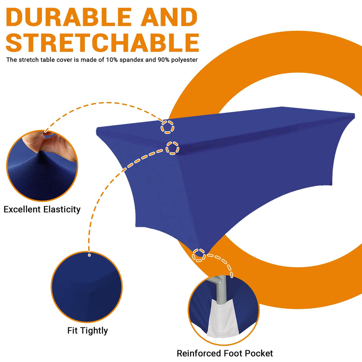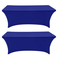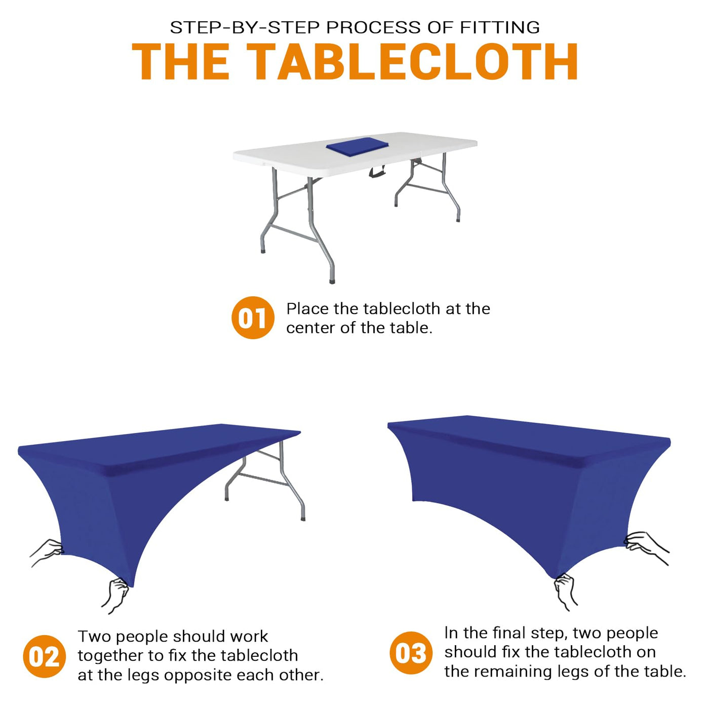 Our 6 feet rectangular stretch tablecloth offers a modern, contemporary look. The sleek, clean lines of our stretch tablecloths are perfect for your wedding, reception, special event or trade show. Stretch table covers are machine washable and stain and wrinkle resistant. Our fitted rectangular stretch tablecloths are made from a stretch polyester material similar to the look and feel of Spandex but are much more affordable. These tablecloths feature a 'pocket' with reinforced plastic designed for the insertion of each table leg to hold the tablecloth securely in place.