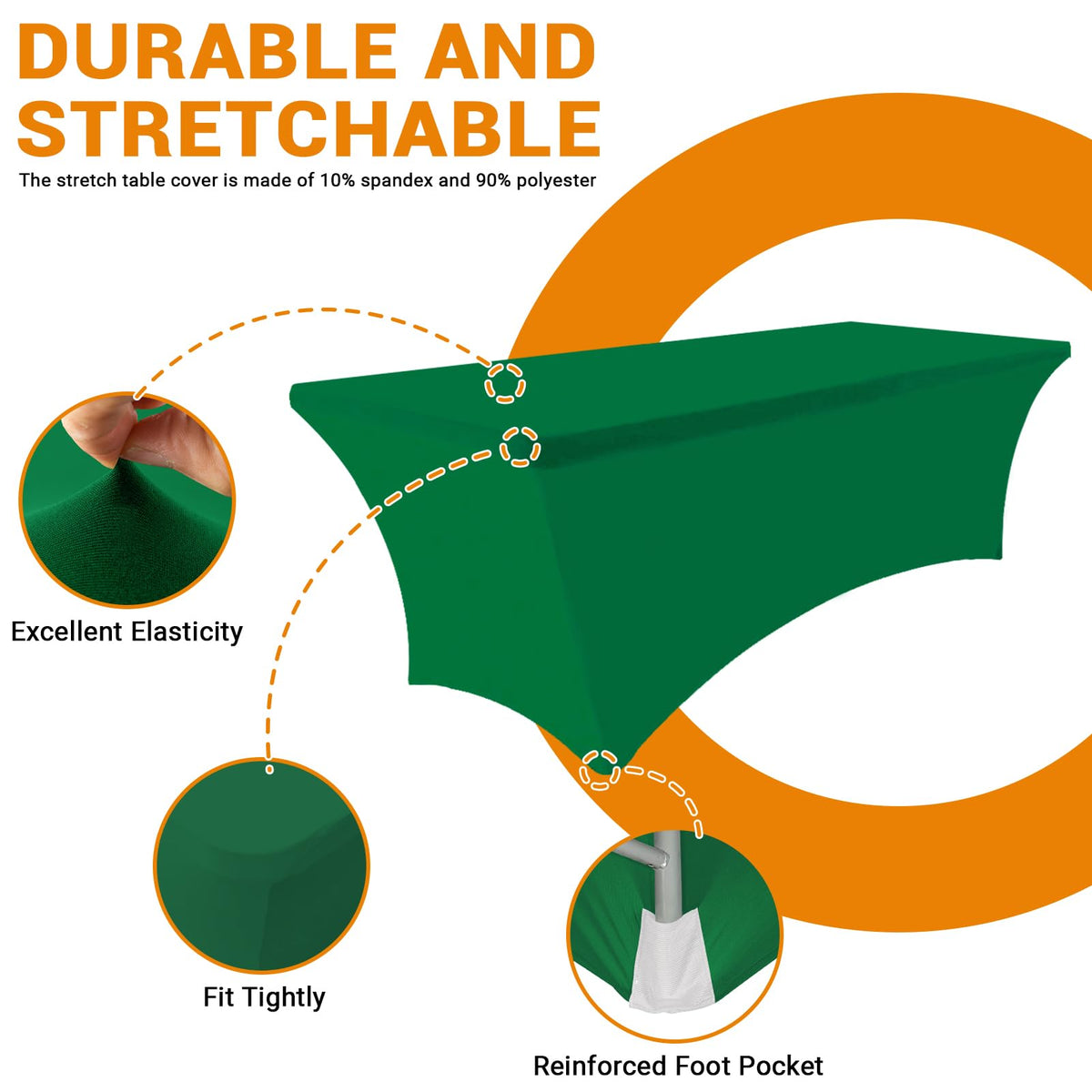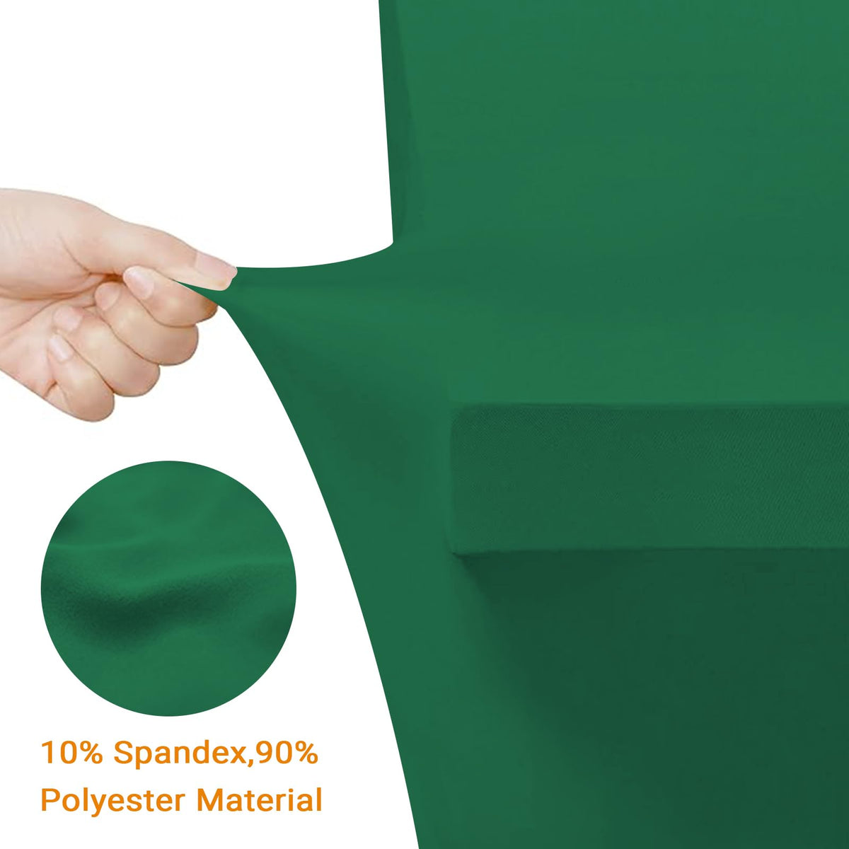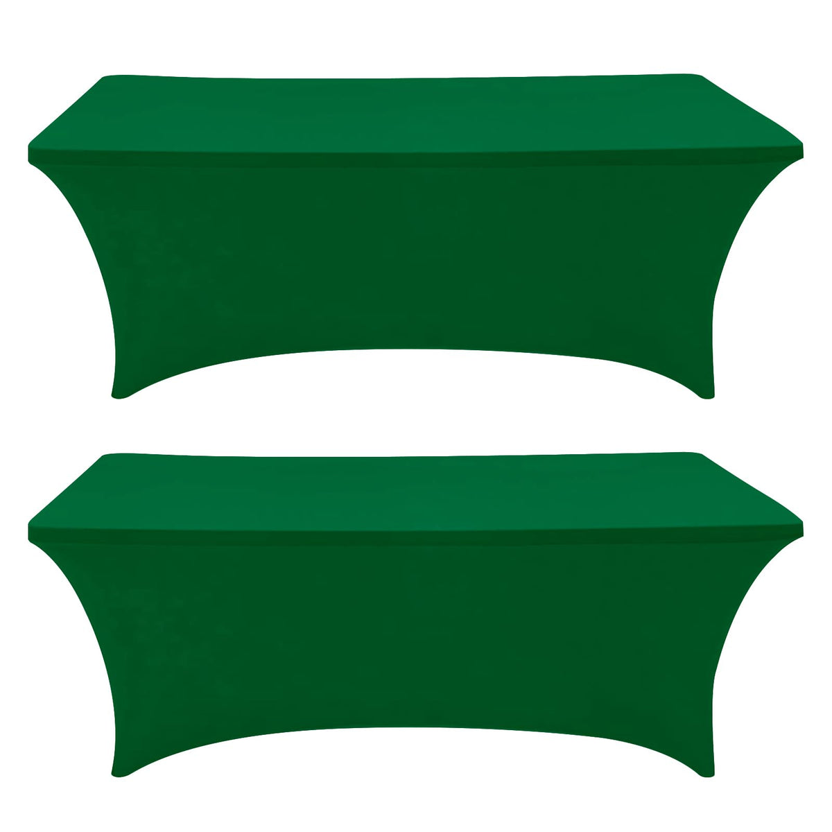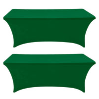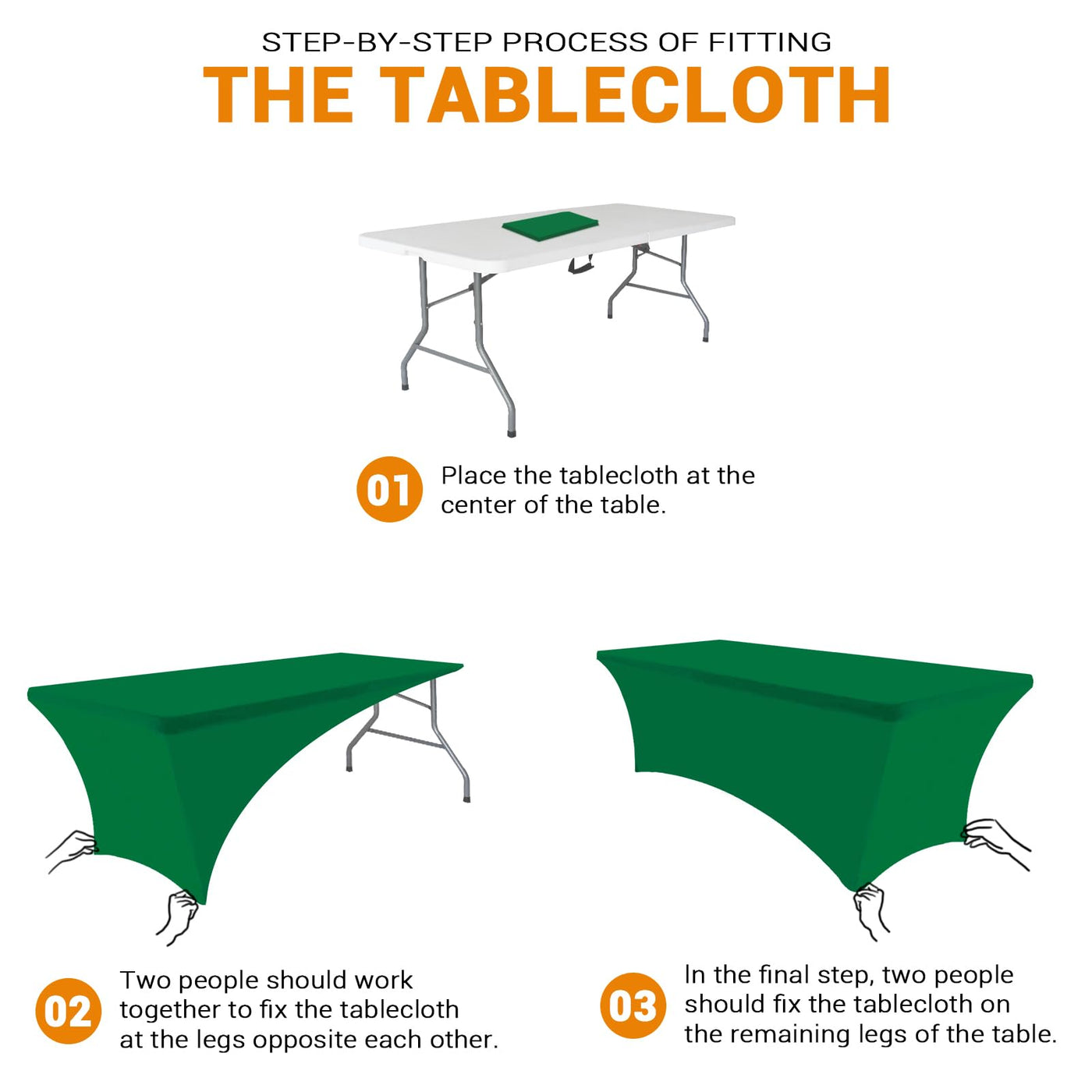 Our 8 feet rectangular stretch tablecloth offers a modern, contemporary look. The sleek, clean lines of our stretch tablecloths are perfect for your wedding, reception, special event or trade show. Stretch table covers are machine washable and stain and wrinkle resistant. Our fitted rectangular stretch tablecloths are made from a stretch polyester material similar to the look and feel of Spandex but are much more affordable. These tablecloths feature a 'pocket' with reinforced plastic designed for the insertion of each table leg to hold the tablecloth securely in place.