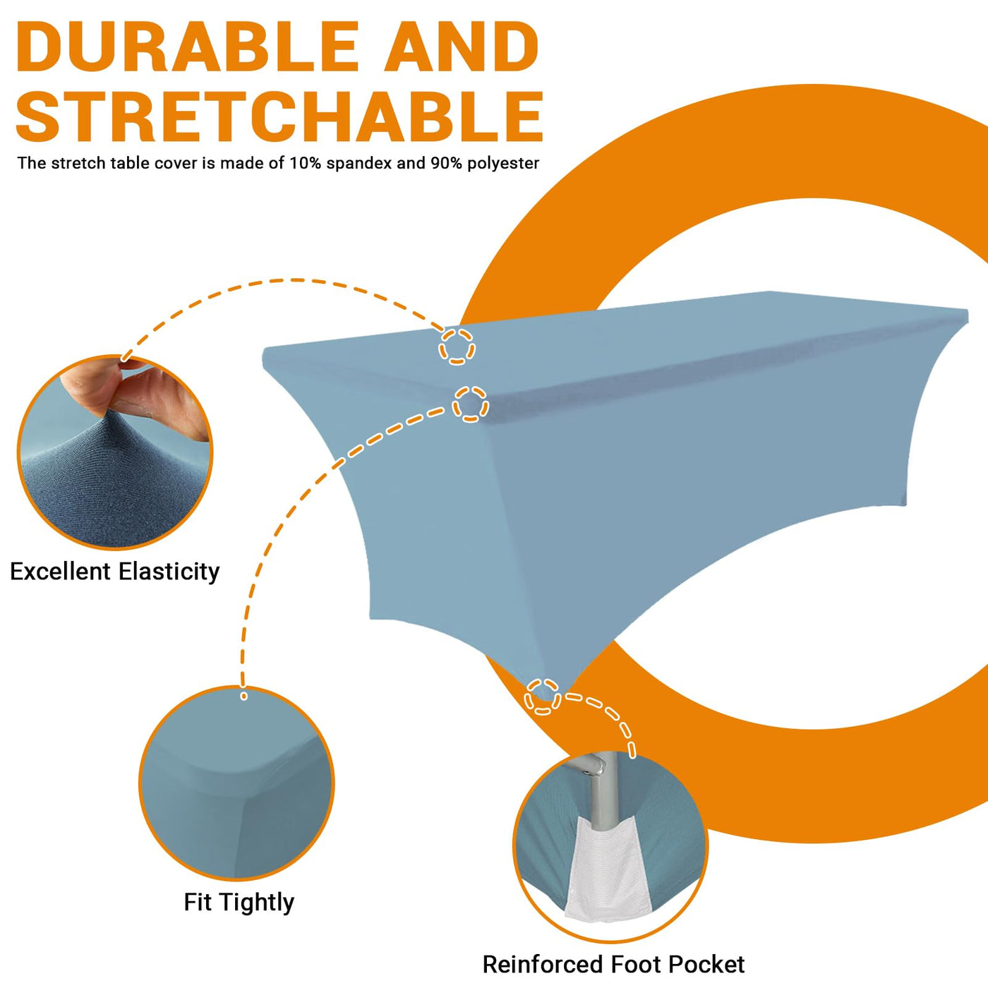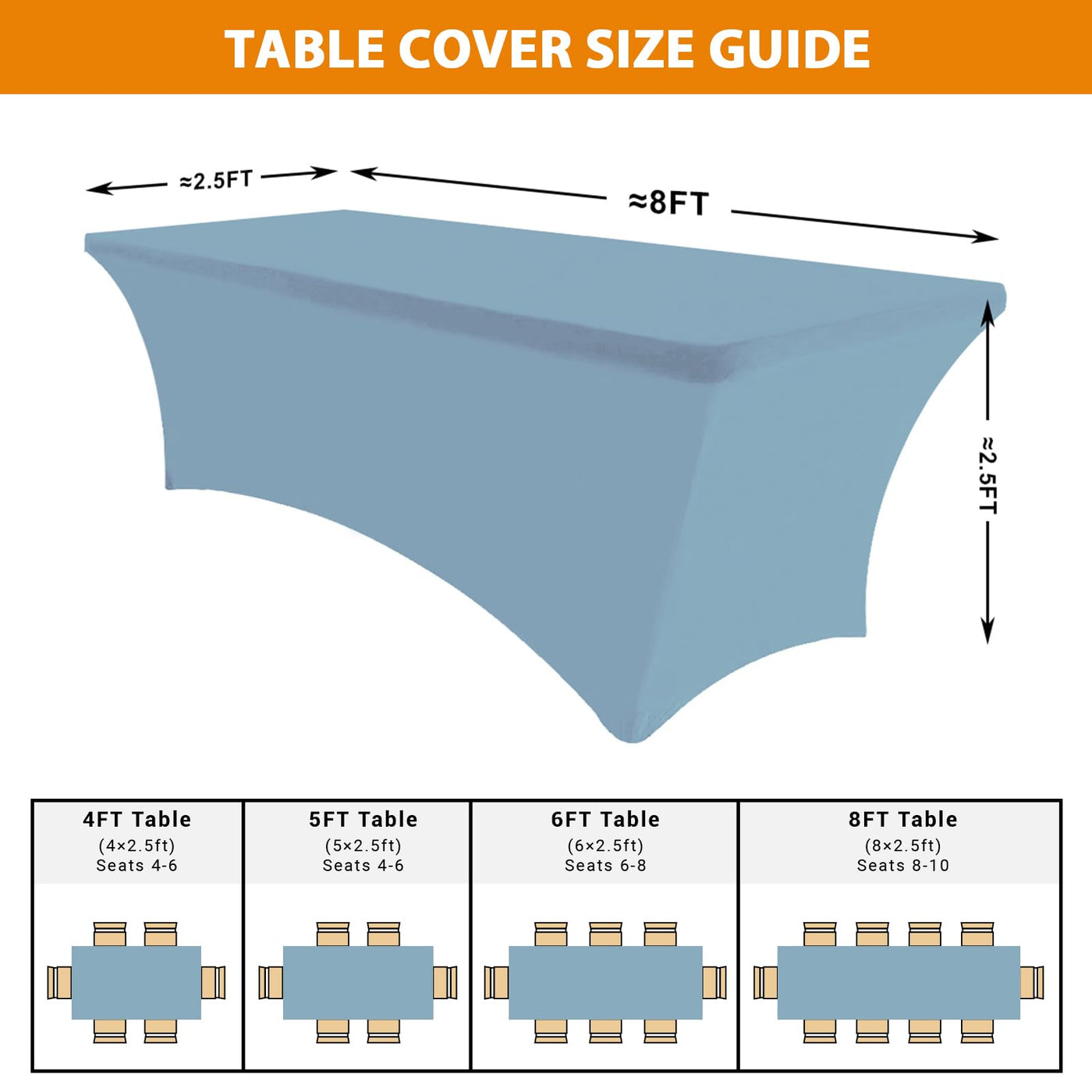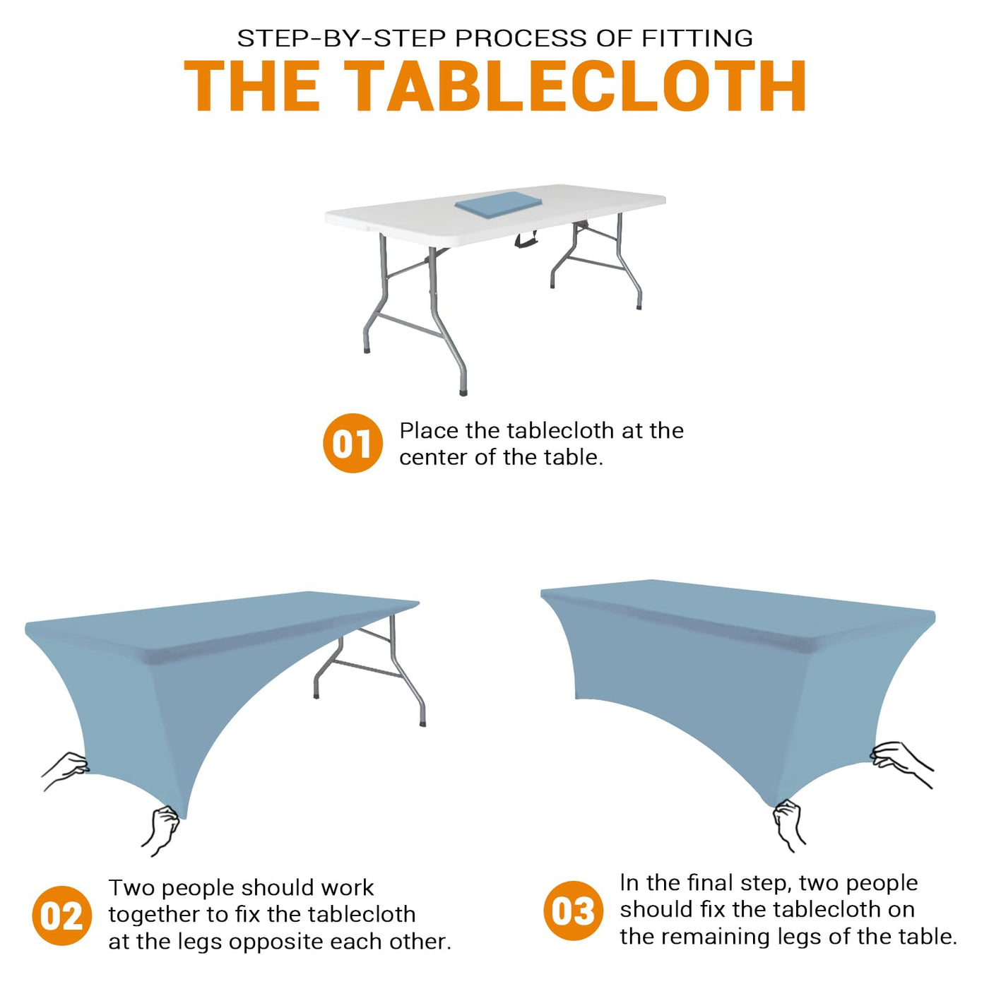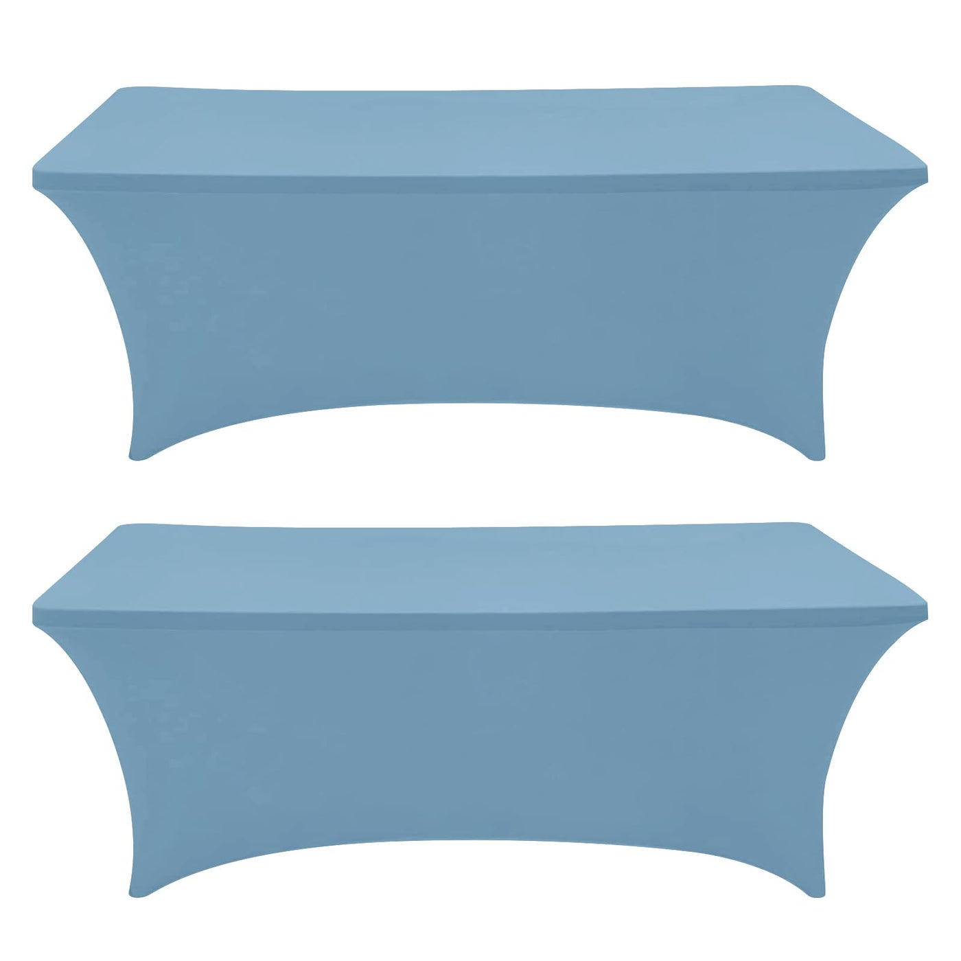 Our 8 feet rectangular stretch tablecloth offers a modern, contemporary look. The sleek, clean lines of our stretch tablecloths are perfect for your wedding, reception, special event or trade show. Stretch table covers are machine washable and stain and wrinkle resistant. Our fitted rectangular stretch tablecloths are made from a stretch polyester material similar to the look and feel of Spandex but are much more affordable. These tablecloths feature a 'pocket' with reinforced plastic designed for the insertion of each table leg to hold the tablecloth securely in place.