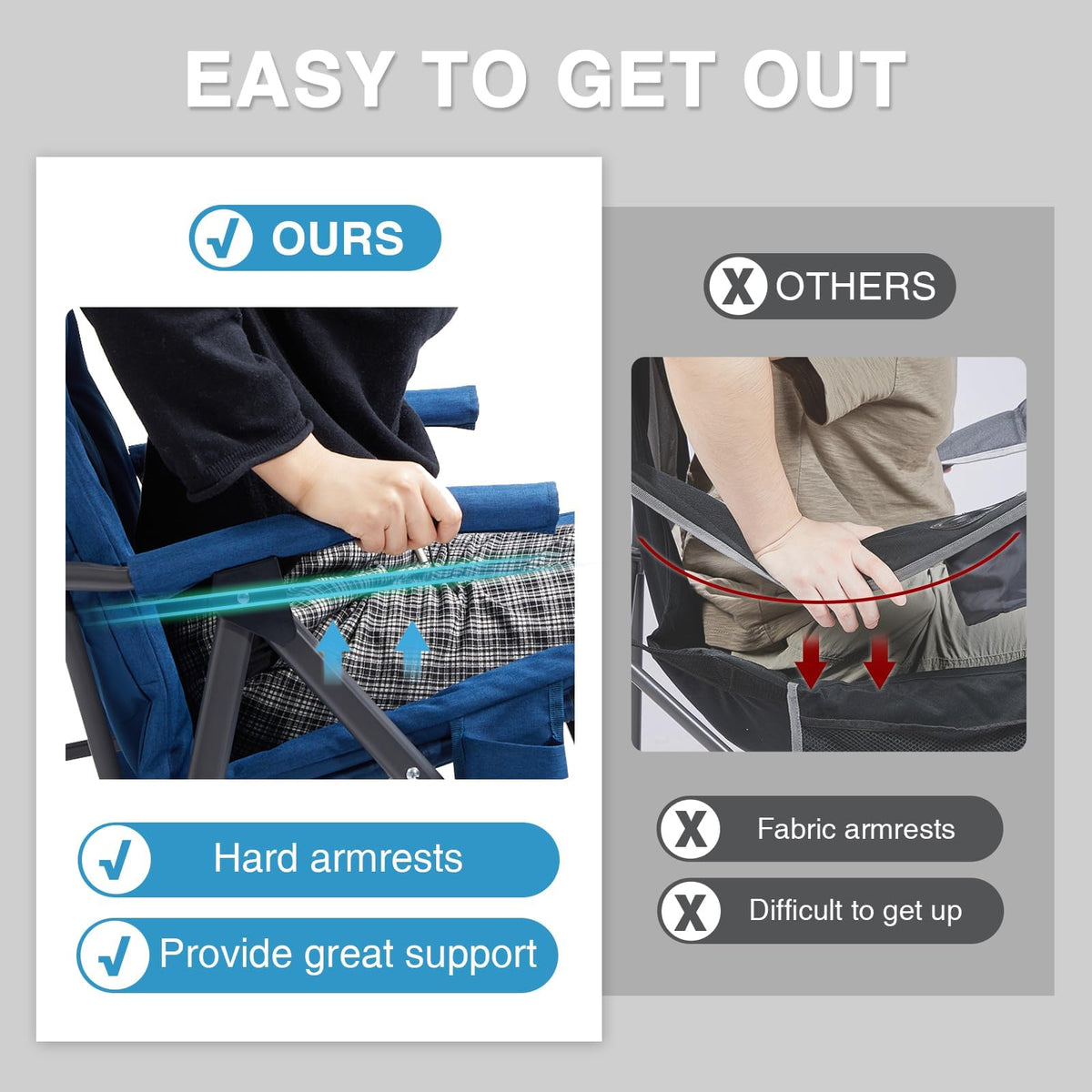 Ever Advanced Oversized Folding Rocking Camping Chair, Padded Portable Rocker Chair For Patio, Lawn And Outdoors, Heavy Duty Hard Armchair For Adults Supports 400Lbs, Blue