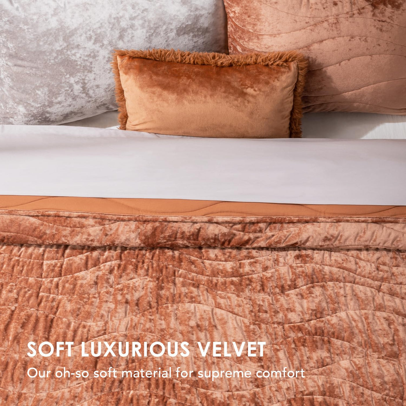 Evergrace Velvet Quilt Is An Ideal Addition To Glitz Up Your Bedroom, Boasting An Inviting Sheen That Varies In Shades Of Color Depending On The Angle And Lighting. Wrap Yourself In The Sumptuous Splendor Of Our Jaw-Dropping Crushed Quilt Set Adorned With An Enchanting Wave Pattern. Its Mesmerizing High-Shine Finish And Irresistibly Soft Touch Transport You To A Realm Of Unrivaled Opulence. Plush Velvet Quilt, Amazingly Soft And Skin-Friendly. Lightweight Oversized Comforter, Breathable And Comfy.