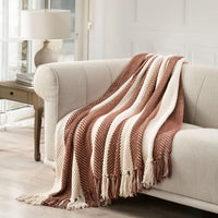 Evergrace Striped Knit Throw Blanket For Couch, Rusty Brown, 60''X80''
