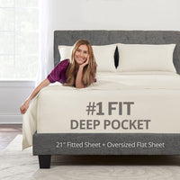Extra Deep Pocket Cal King Bed-Sheets - 4-Piece Includes: 18 -21 Inch Super Extra Deep Pocket Fitted Sheet - Oversize Flat Sheet - 2 Zipper Closure Pillowcases - California King - Ivory (Off White)