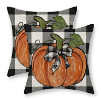 Fall Pillow Covers 22X22 Set Of 2 Pumpkin Maple Leaves And Buffalo Plaid Fall Decor Pillowcase Linen Autumn Thanksgiving Decorat