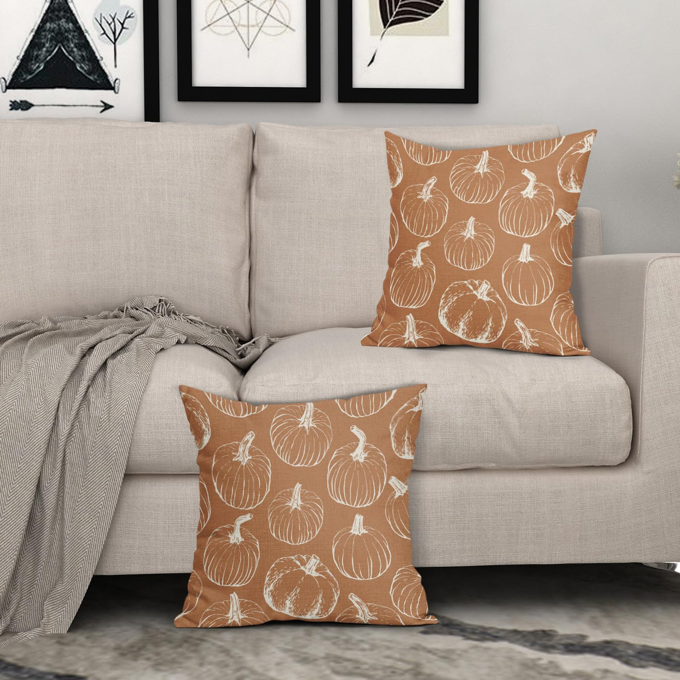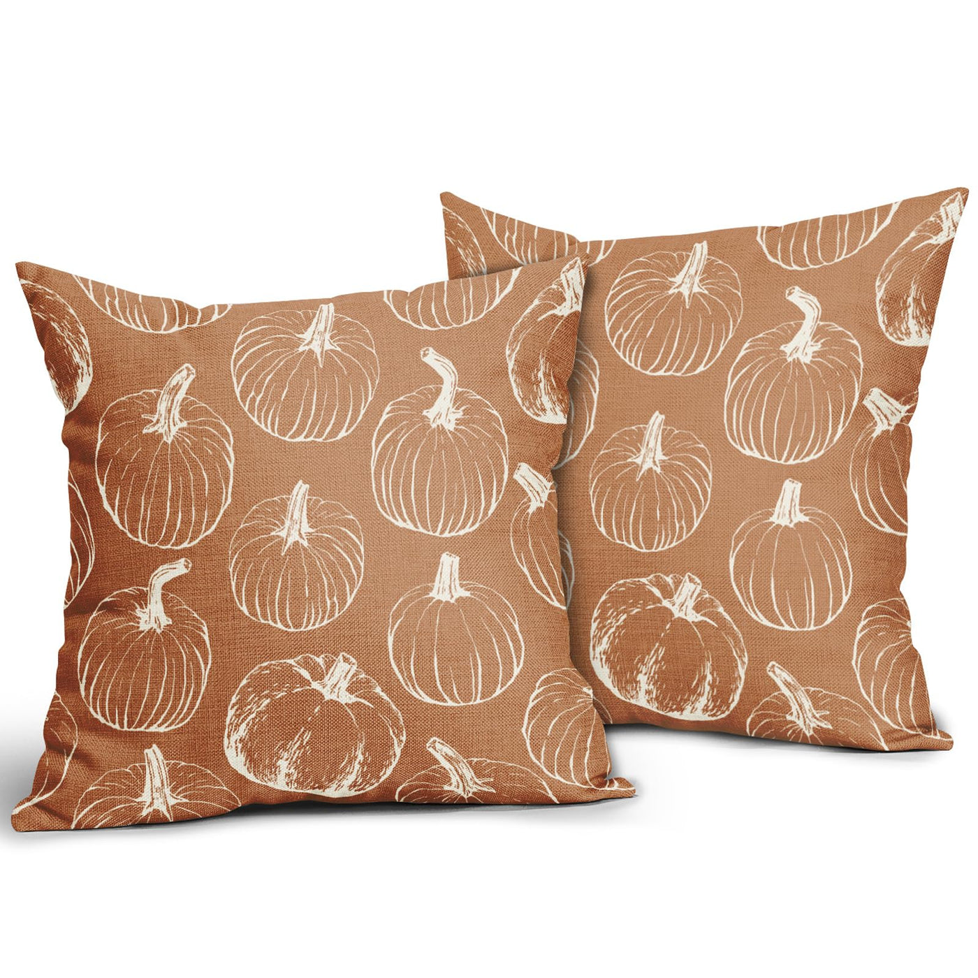 Fall Pumpkin Pillow Covers 18X18 Set Of 2 Autumn Themed Thanksgiving Harvest Burnt Orange Print Decorative Throw Pillows Outdoor
