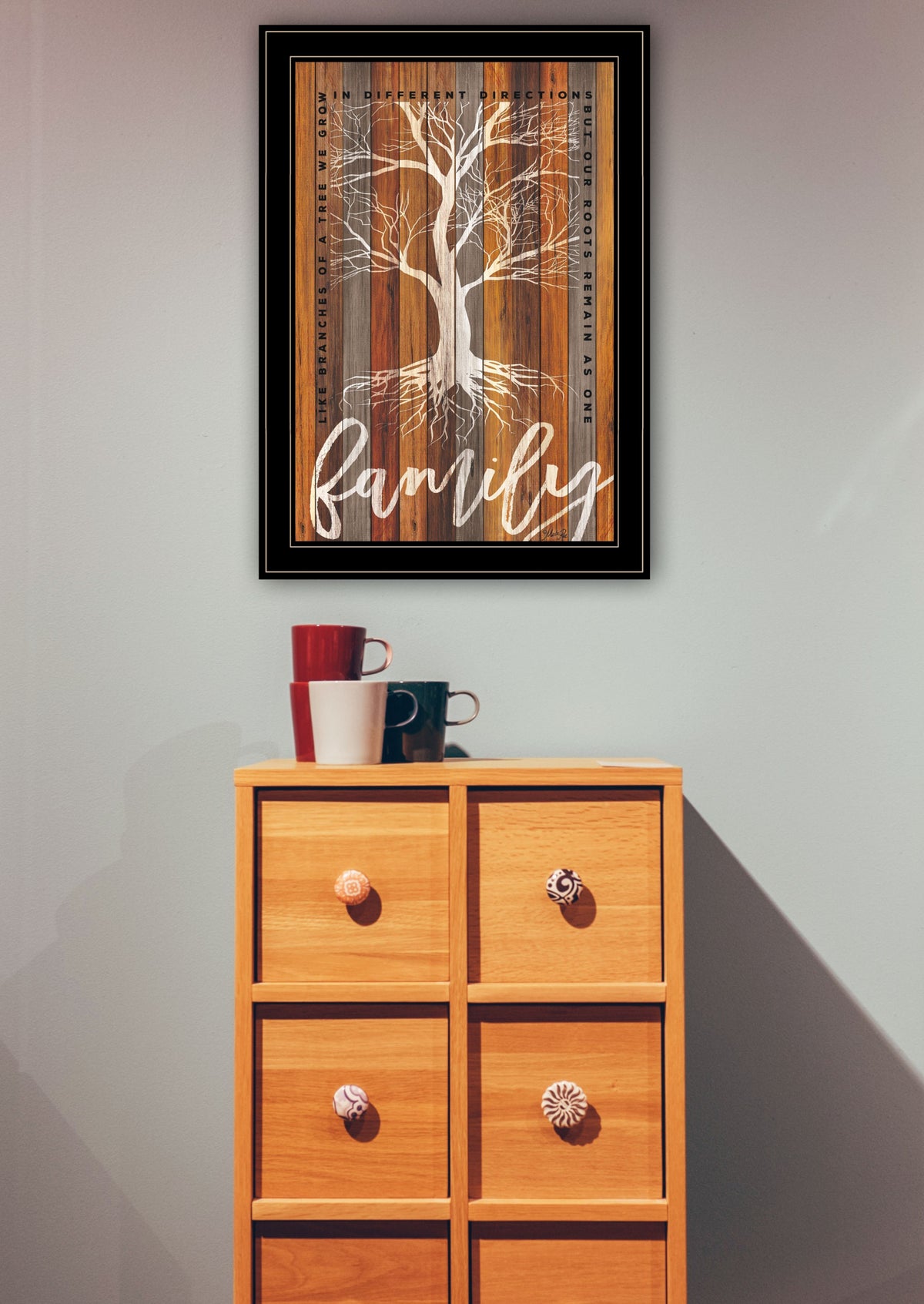 This family roots 2 black framed print wall art will add a beautiful decorative accent to your decor. This print is a visual artistic expression that allows you to decorate your space in reproduced for you on style. This hanging decorative accent will be a trendy and fashionable way to dress your wall. Adding this hanging wall art to your space to make your room feel more finished and attractive. Instantly liven up your space with this art that brings color dimension to your 2. 1' H x 1 5' W x 1' D