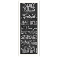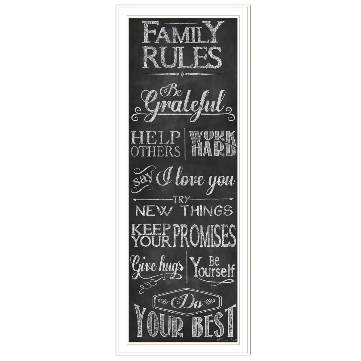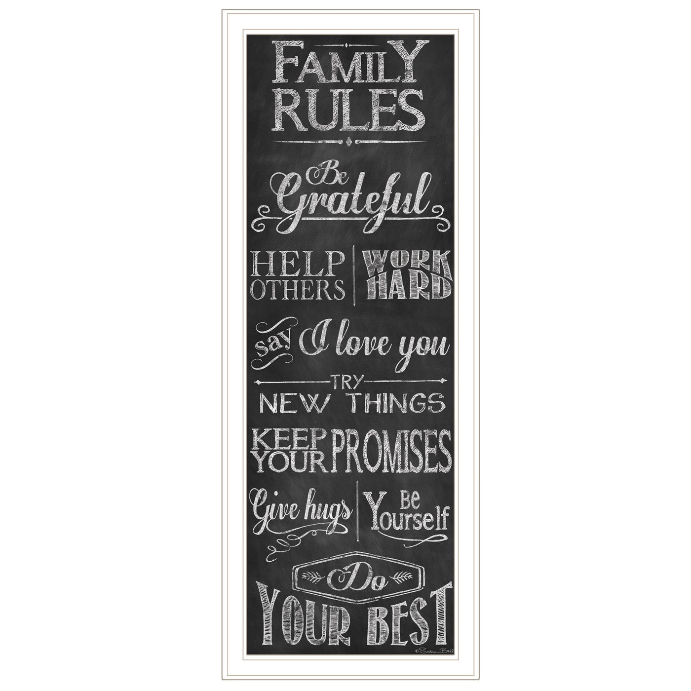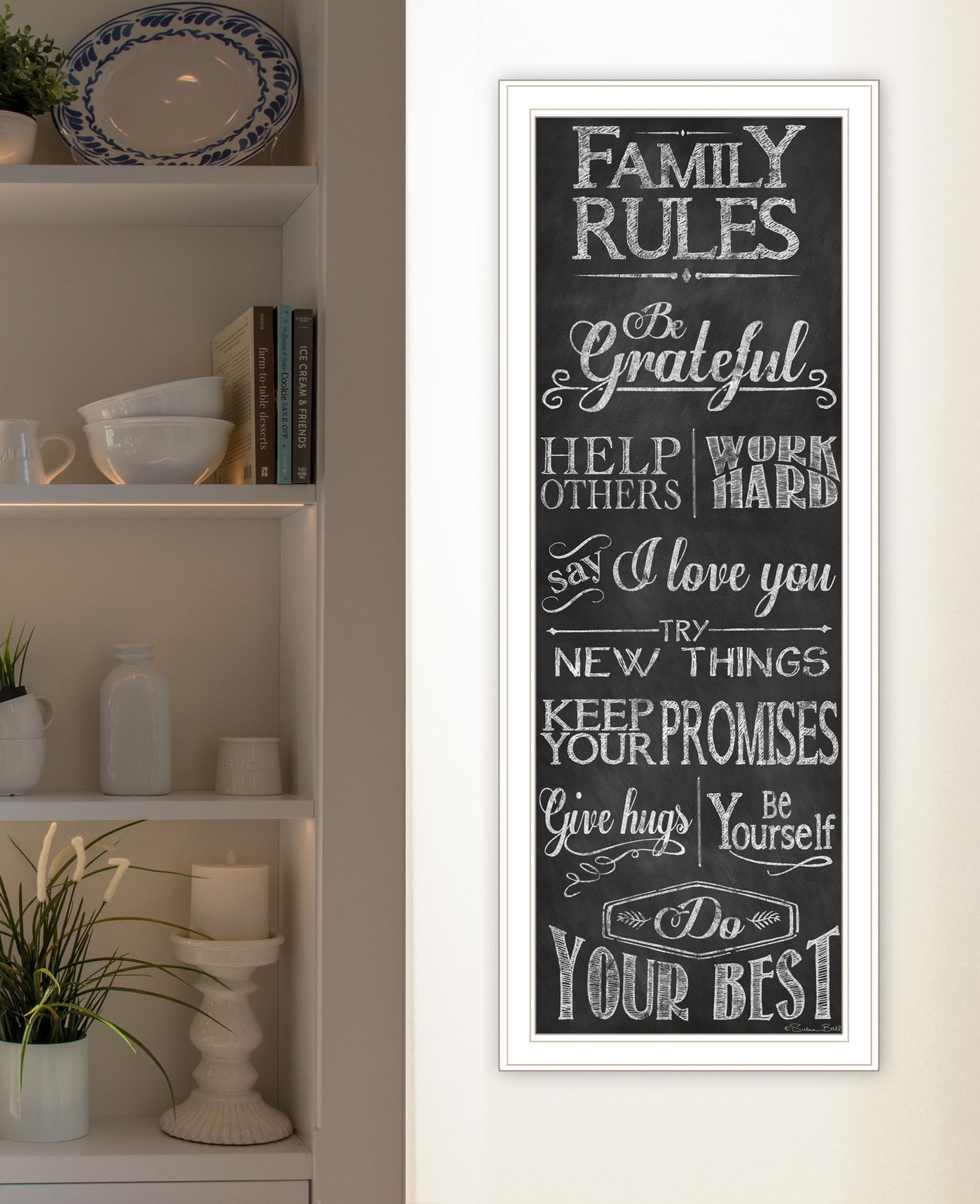 Bring some sizzle to your space with this eye-catching family rules 2 white framed print wall art. This print is a visual artistic expression that allows you to decorate your space in Reproduced for you on paper, this hanging decorative accent will be a trendy and fashionable way to dress your walls. Adding this hanging wall art to your space to make your room feel more and attractive. Utilize this opportunity to create a focal point in the room with this wonderful wall with this wonderful wall decor option. 39. 'H x 15' W x 1' D