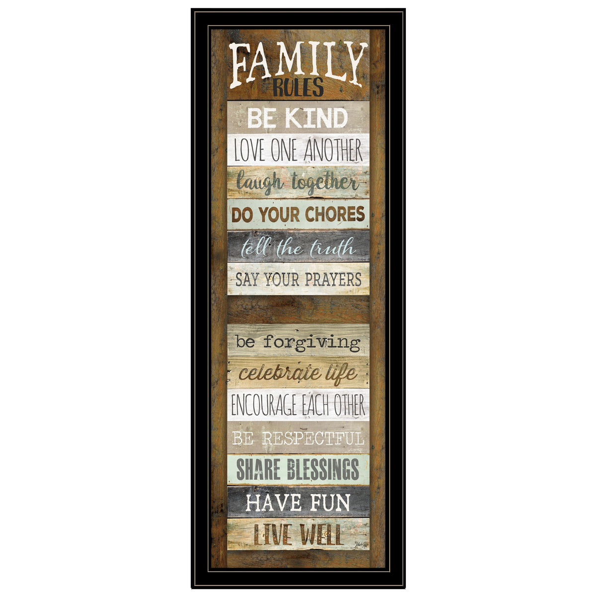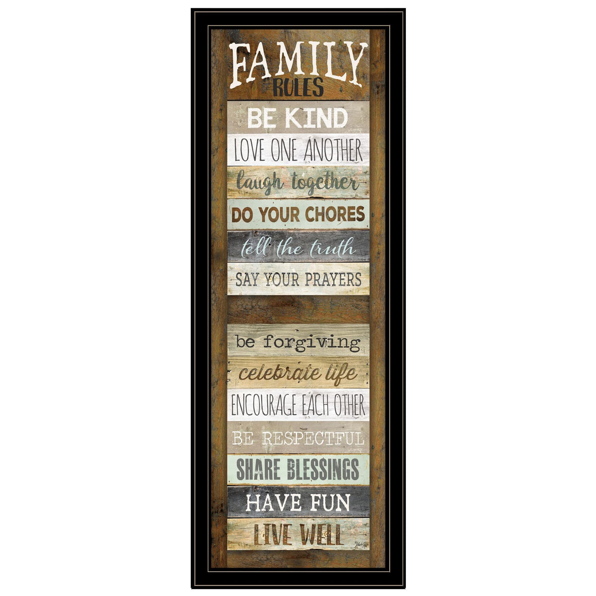 This family rules shutter 4 black framed print wall art will add a beautiful decorative accent to your decor. This print is a visual artistic expression that allows you to decorate your space in restyle. Made for you on paper, this hanging accent will be a trendy and fashionable way to dress your walls. Adding this hanging wall art to make your room feel more finished and attractive. Instantly liven up your space with this art that brings color to your space. Walls: 39' H x 15' W x 1' D