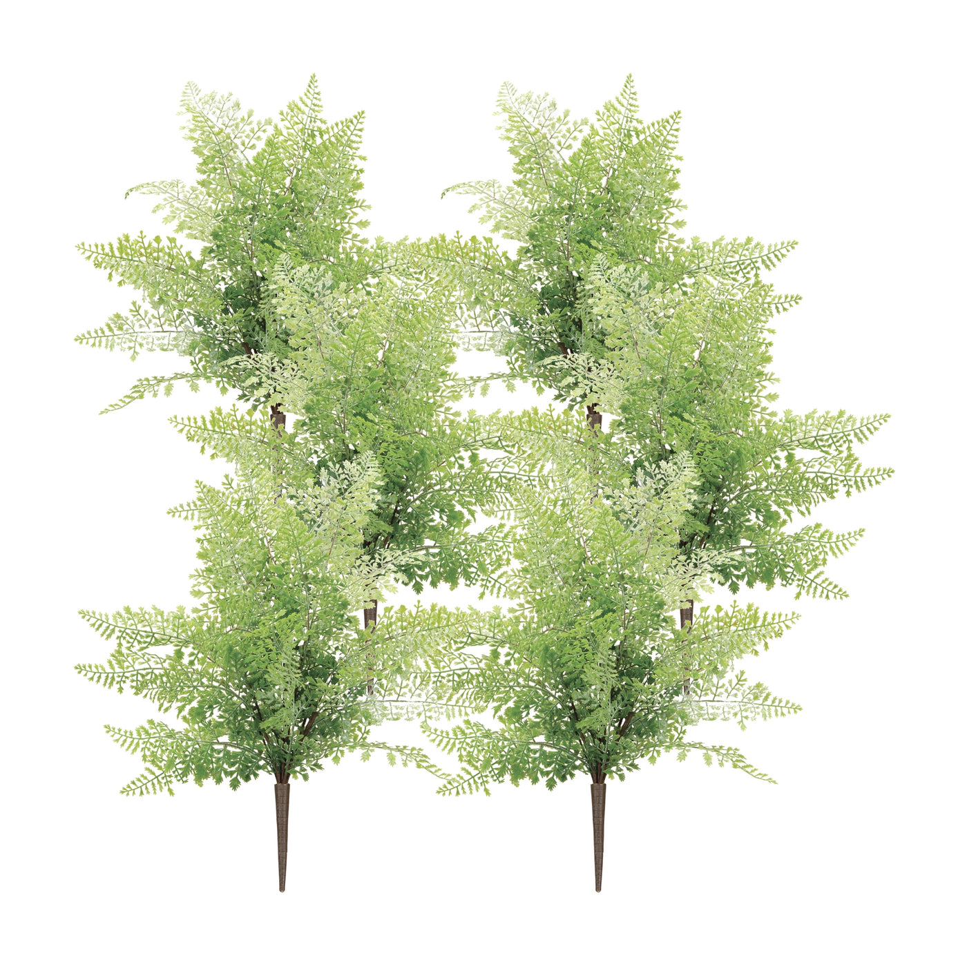Fern Bush 19''H Plastic Add a pop of natural color to your home with this beautiful Fern Bushes. Featuring 6 pieces, this set's varigated fern foliage is sure to fit in with any style of home decor. The quality plastic leaves are sure to last for seasons to come. Display the set in a vase or decorative container to complete the look. Measures 9 x 7 x 19 each Primary Materials: Plastic Reccommended for indoor or outdoor covered use only