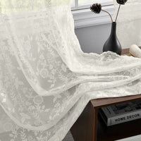 Finecity Lace Curtains For Living Room - Country Branch Leaf Floral Sheer Lace Curtains 96 Inch Length, Scalloped Macrame Cream