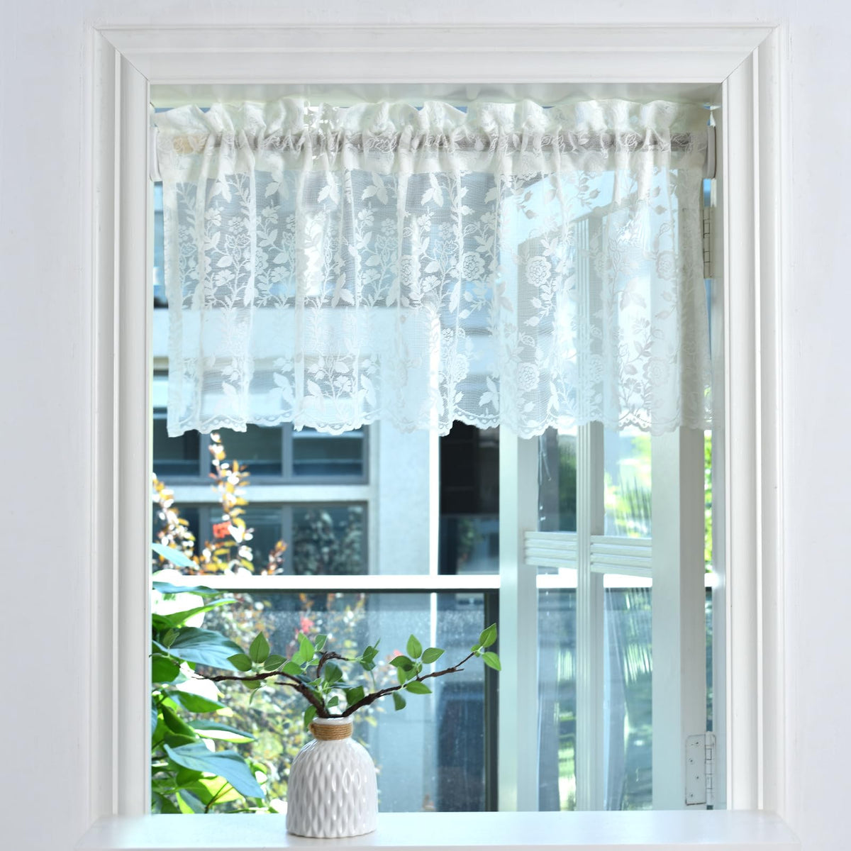 Q: What style of decor does the FINECITY Lace Valance suit best?A: The vintage floral design of the FINECITY Lace Valance complements both modern and country-inspired decor, adding a romantic touch to any room.