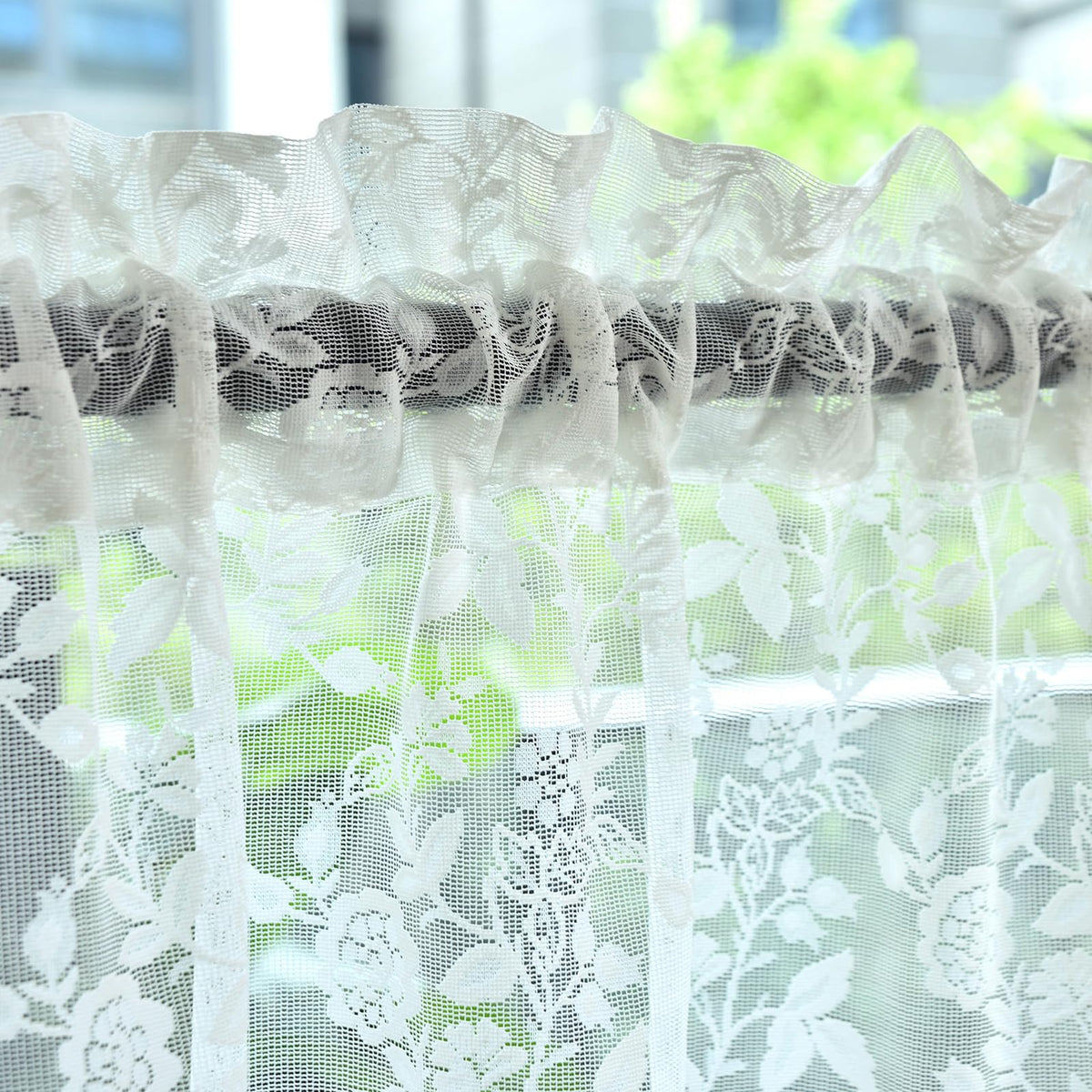 Finecity Lace Valances For Windows Over Sink, Rustic Leaf Floral Scalloped Bottom Sheer Kitchen Valance Curtain 18 Inch Length, Rod Pocket Privacy Short Lace Valance, 52 X 18 Inch, 1 Panel, Ivory --- Brighten Up Your Windows With This Country Rustic Floral Leaf Embroidered Ivory Lace Valances For Windows Quick View: Imported 100% Durable Polyester 100% Brand New Item Name: Finecity Lace Valance For Windows Opacity: Sheer Package Includes: 1* Panel Of Lace Valance Curtain (Embroidery Country Floral Leaf Patterned) Size: W52 X L18 /Panel Color: Ivory Header: Dual-Rod Pocket (1.2 +2.8 ) Compatible With Rod Size: Up To 1.50-Inch Diameter Pattern: Knitted Vintage Floral Leaf Scalloped Bottom Lace Functions: Filter The Glaring Sunlight And Enhance Privacy While Providing Exceptional Style Easy Care: Machine Washable In Cold Water Gentle Cycle Tumble Dry Low Cool Iron If Needed Do Not Bleach Please Note: The Digital Images We Display Have The Most Accurate Color Possible. However, Due To Differences In Computer Monitors And Lighting, The Short Lace Curtains Color May Be Slightly Different From The Pictures.