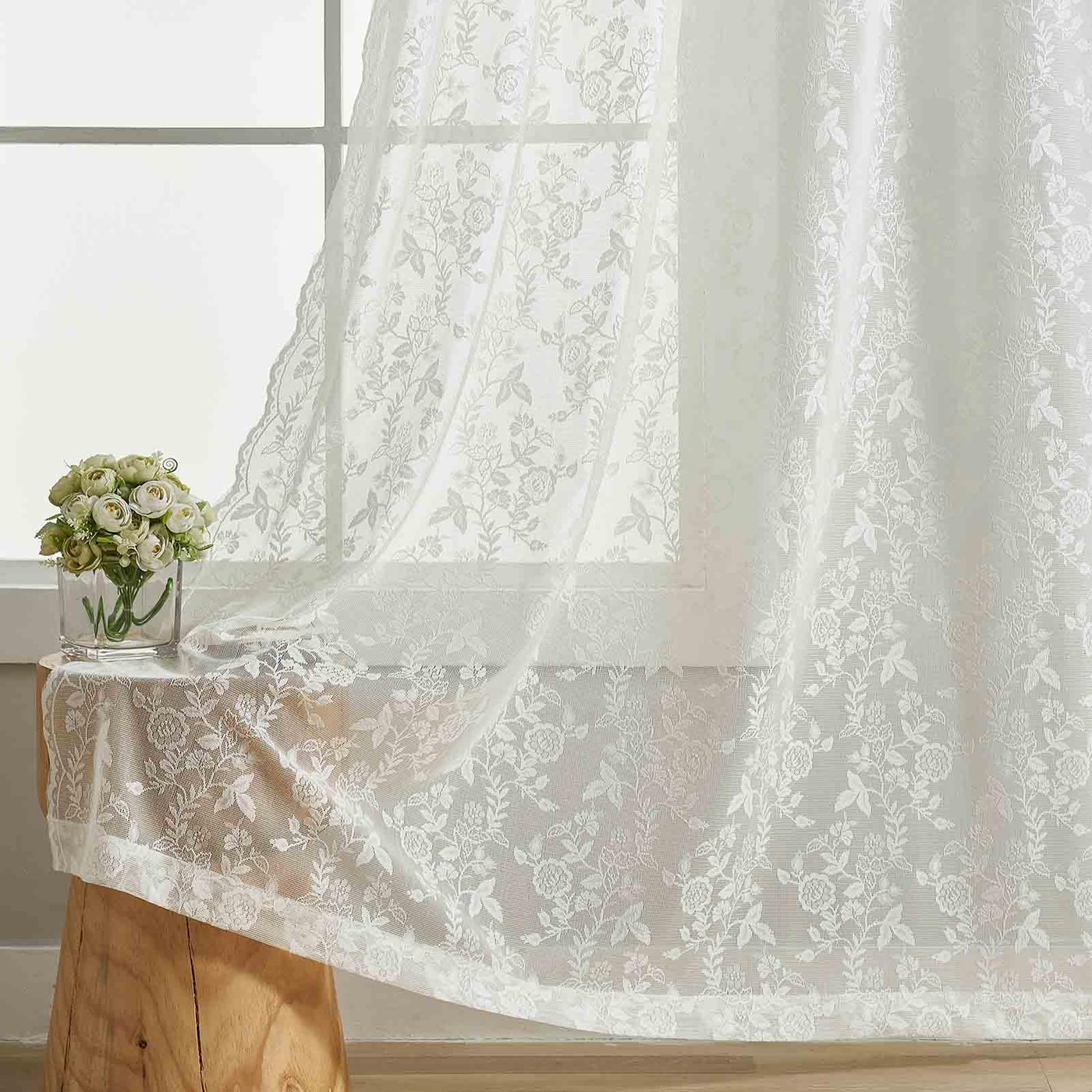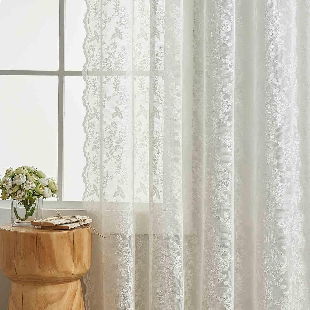 Q: What style do the FINECITY Lace Curtains complement?A: The FINECITY Lace Curtains feature a delicate scalloped floral design that complements both modern and country-inspired home decor, adding a romantic and airy feel to any room.
