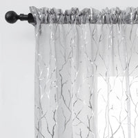 Finecity Silver Grey Sheer Curtains 96-Inch Long - Metallic Silver Tree Bedroom Curtains Sparkle Sheer Branch Window Curtain 2 P