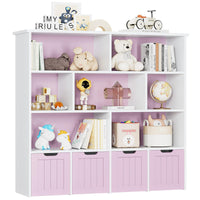 Finetones Toy Storage Organizer, Large Toy Organizers And Storage With 4 Movable Drawers And 7 Storage Cubbies, Toy Chest Shelf Organizer With Hidden Wheels, Kids Bookshelf And Toy Storage, Pink