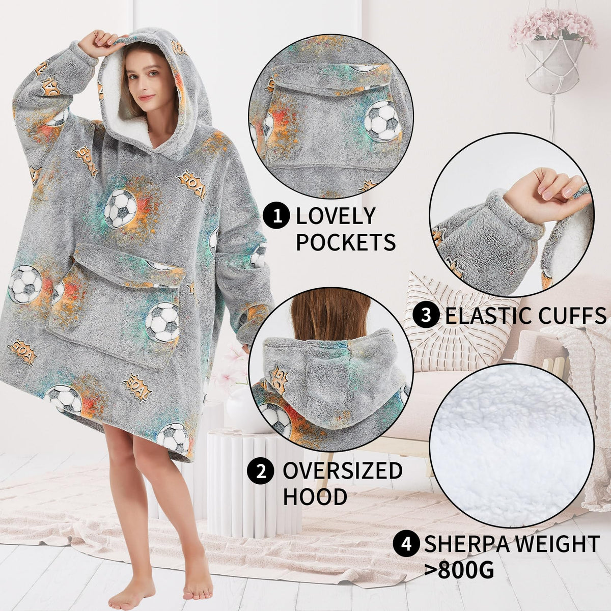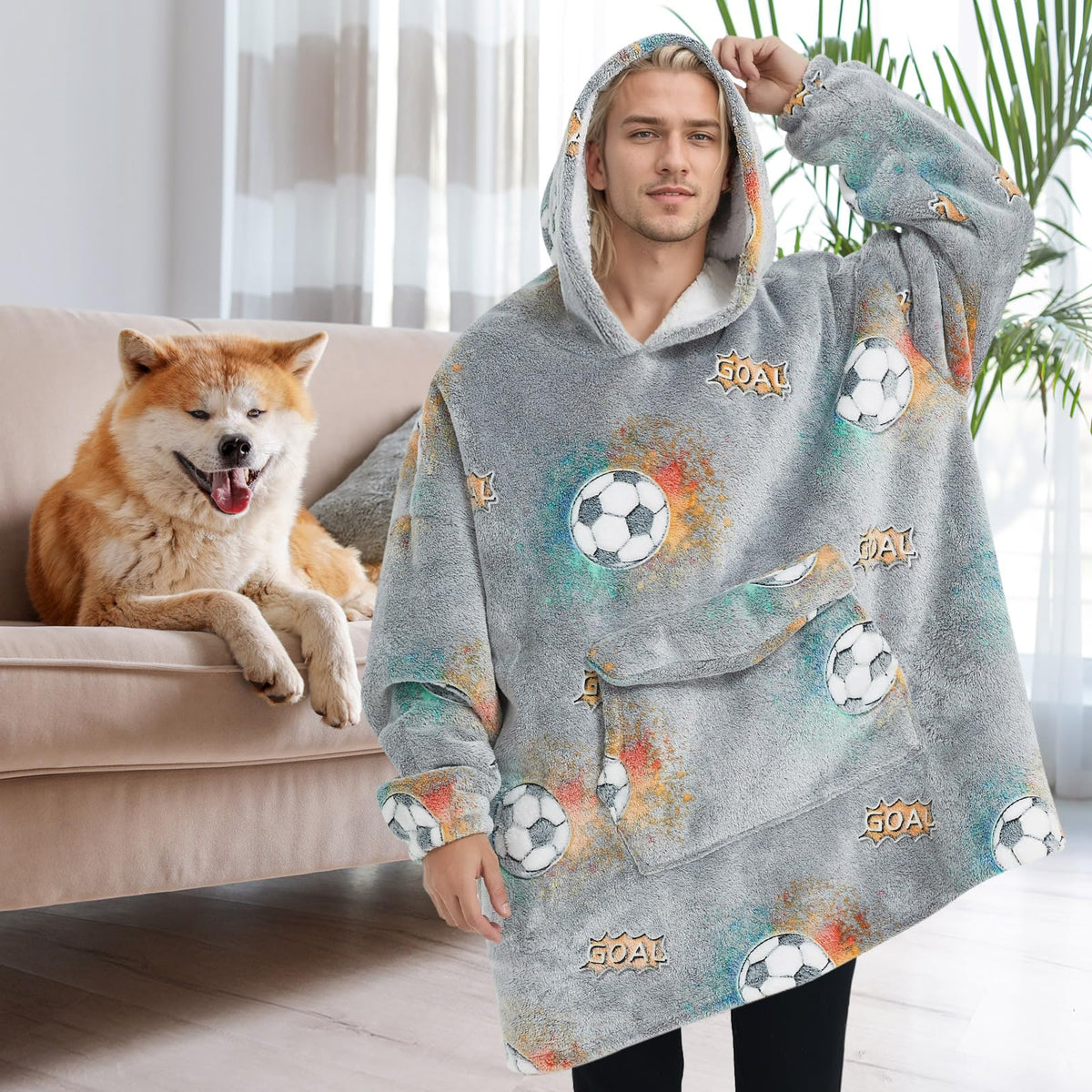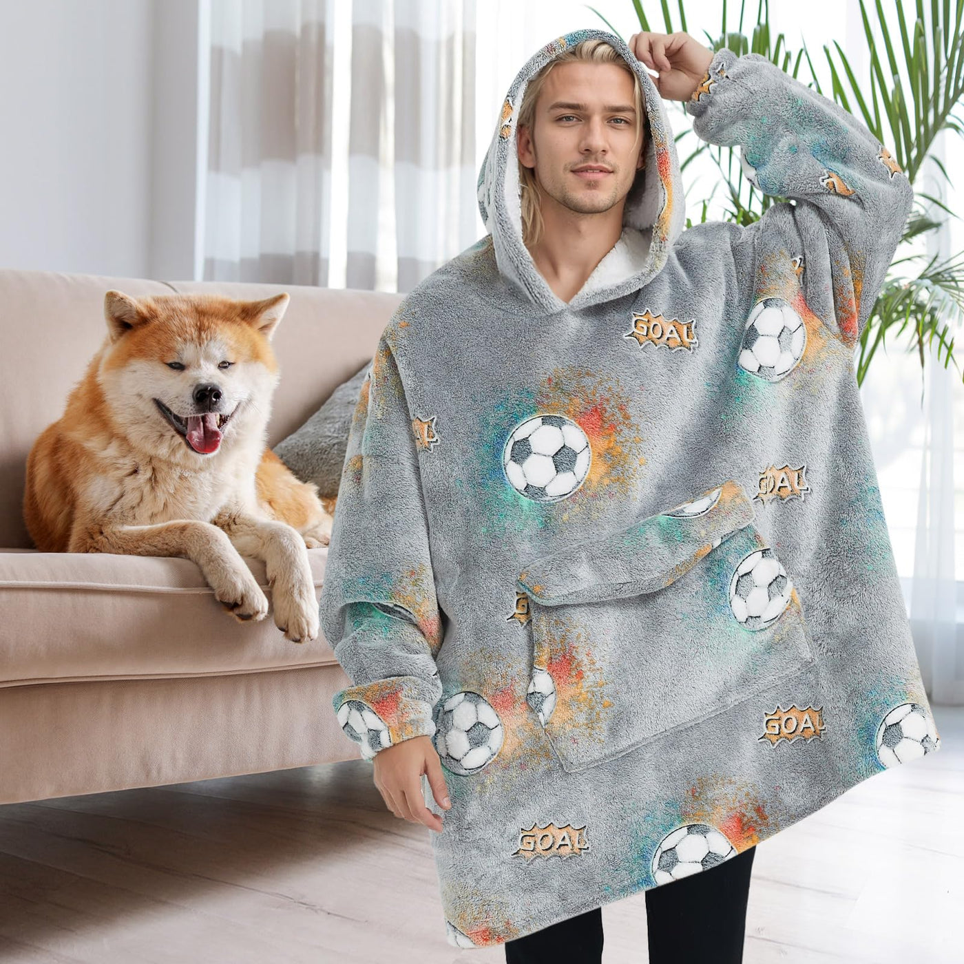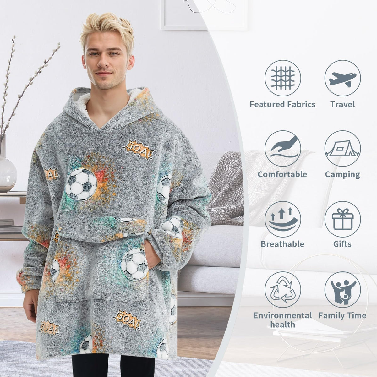 Q: Can I use this hoodie blanket outdoors?A: Absolutely! The oversized wearable blanket hoodie is perfect for both indoor and outdoor activities. It's ideal for lounging at home, as well as for outdoor stadiums, sporting events, camping, beaches, and garden walks.