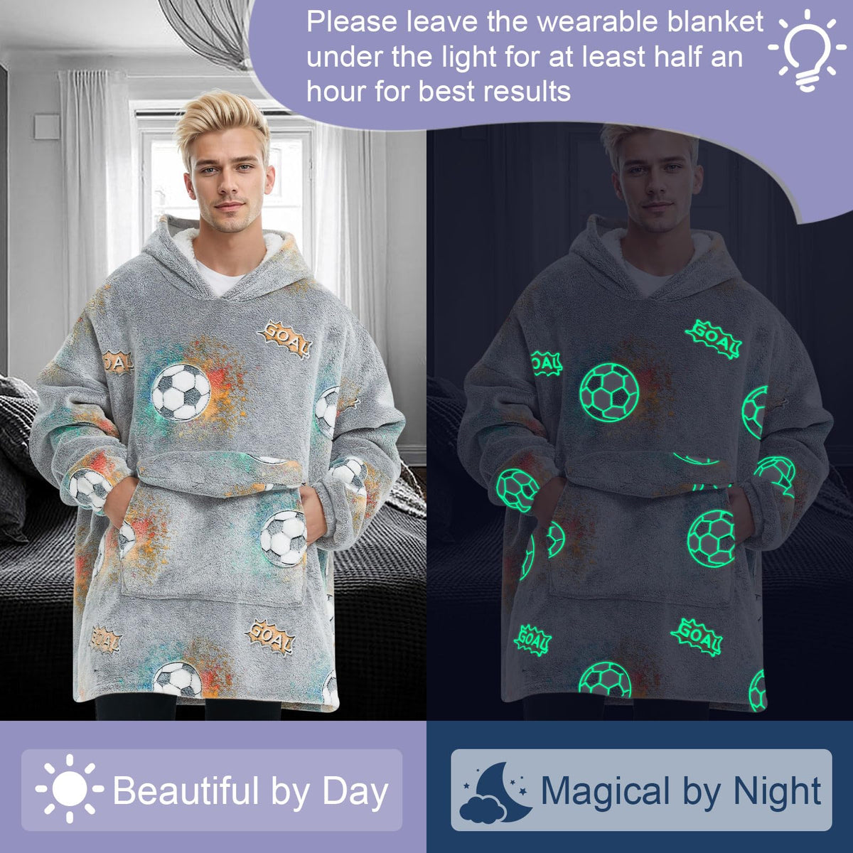 Fiosnow Glow In The Dark Football Blanket Hoodies For Women And Men Adult Oversize Wearable Blanket Hoodies For Soft And Warm