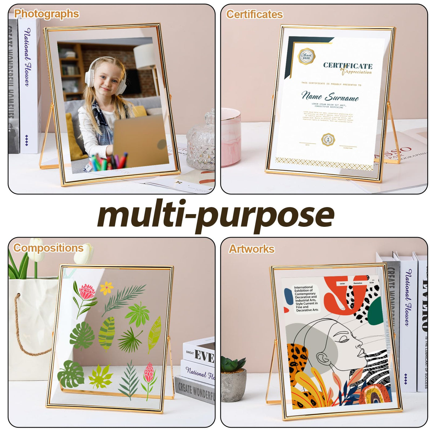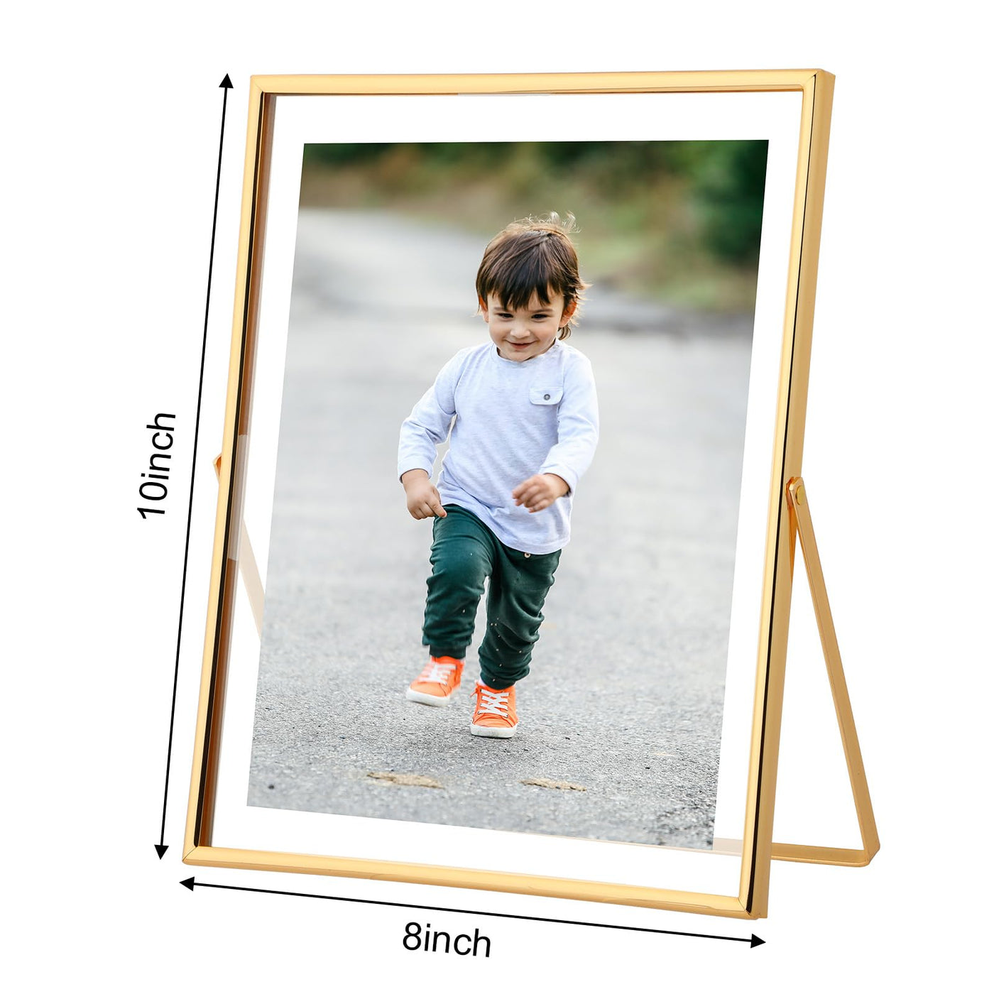 Fixwal Gold Frame Floating Picture Frame Set Of 2, 8 X 10 Tempered Glass Frame, For Tabletop Display, Gold Metal Display Frame,