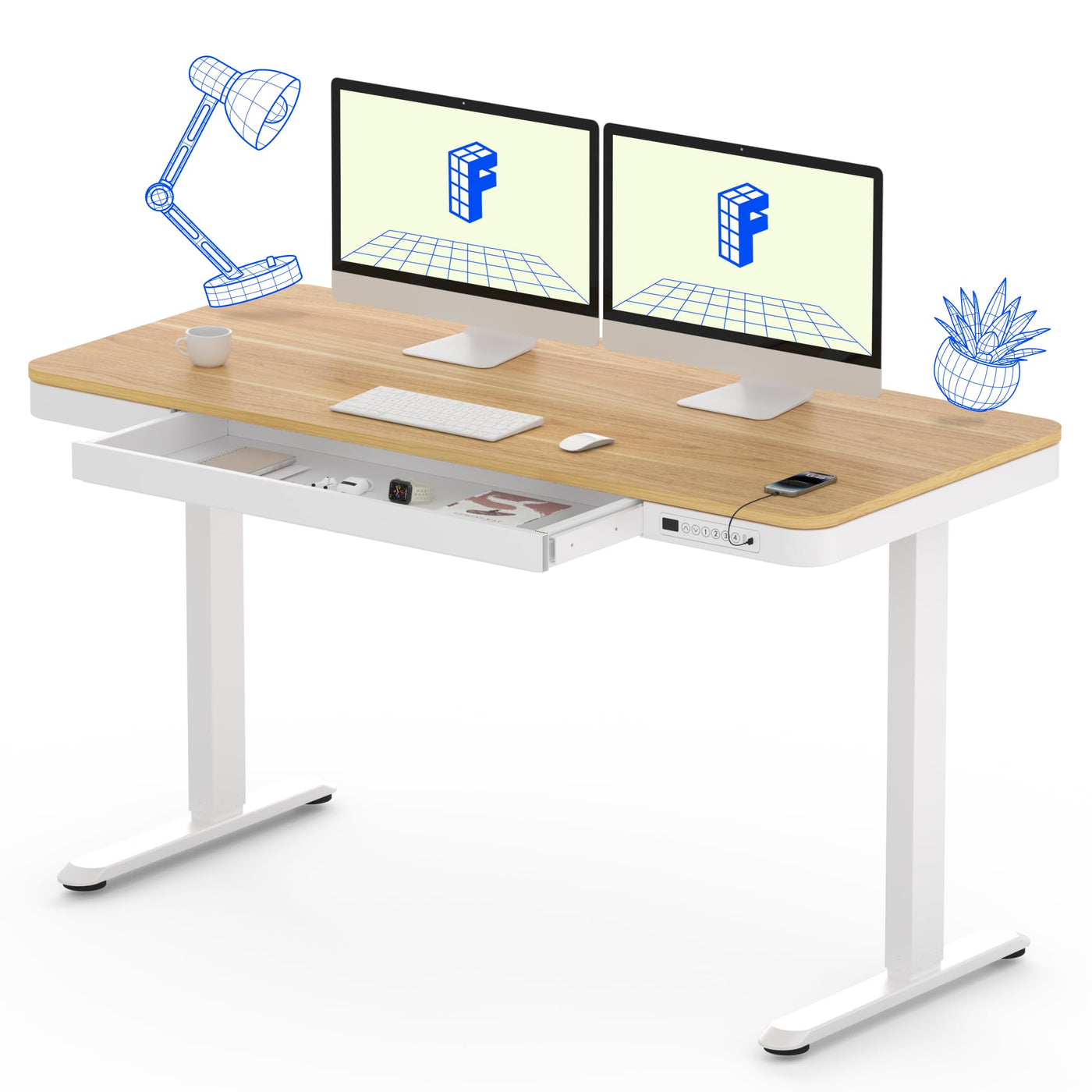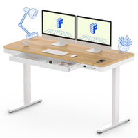 Flexispot 55' Electric Standing Desk With Drawers, Quick Assembly Home Office Sit Stand Desk With Storage, Usb Charging, Computer Desk For Home Office (Maple Top + White Adjustable Frame, Comhar)