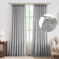 Q: What types of hanging options are available for these curtains?A: These curtains offer versatile hanging options, including using hooks on poles or tracks, back tabs to hide the rod, or clip rings for easy sliding. Note that clip rings are not included.
