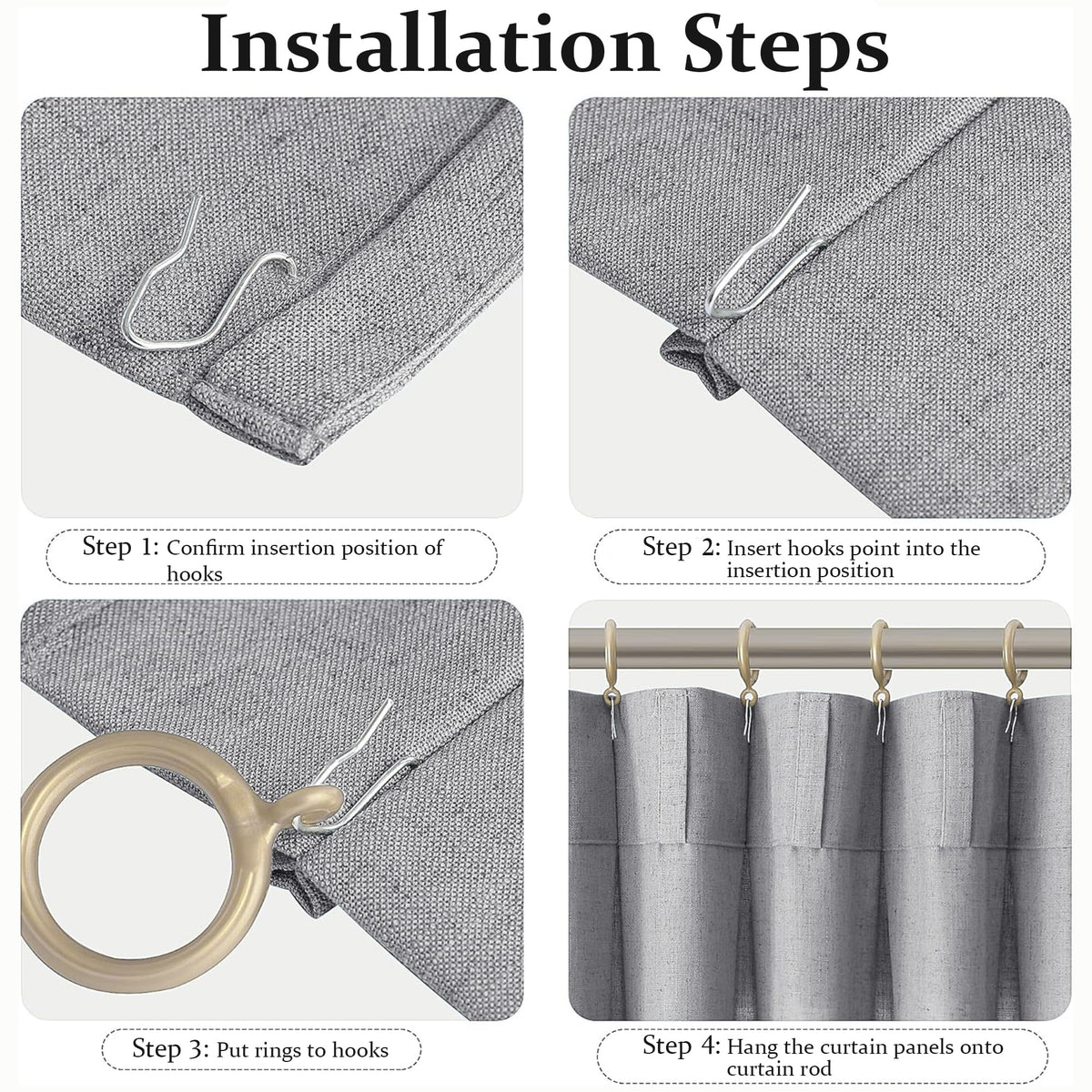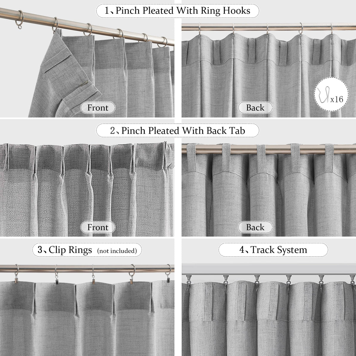 Fmfunctex Linen Pinch Pleated Curtains 96 Inches Long For Living Room, Dove Grey Semi Sheer Pleat Drapes For Bedroom With Hooks,