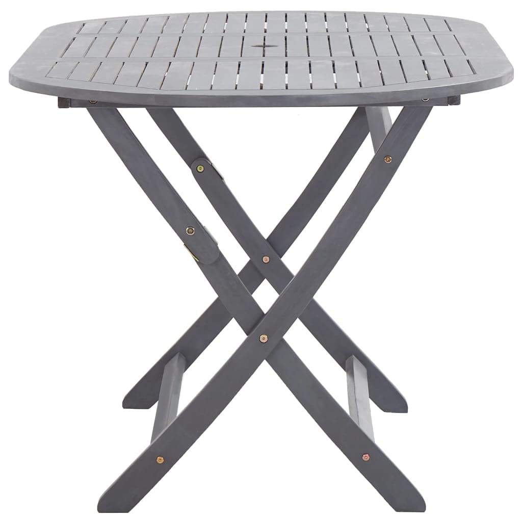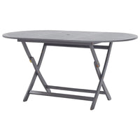 Enjoy a nice meal outdoors with your family and friends around our garden table! The wooden table will bring a touch of rustic charm to your patio, garden or terrace. The outdoor dining table is made of solid acacia wood, a tropical hardwood, which is weather-resistant and highly durable. It features a hole for holding a parasol firmly in the middle. The outdoor table can be folded away to save space when not in use. The dining table needs assembly.Material: Acacia hardwood with a grey washDimensions: 160 x 85 x 75 cm (L x W x H)Foldable