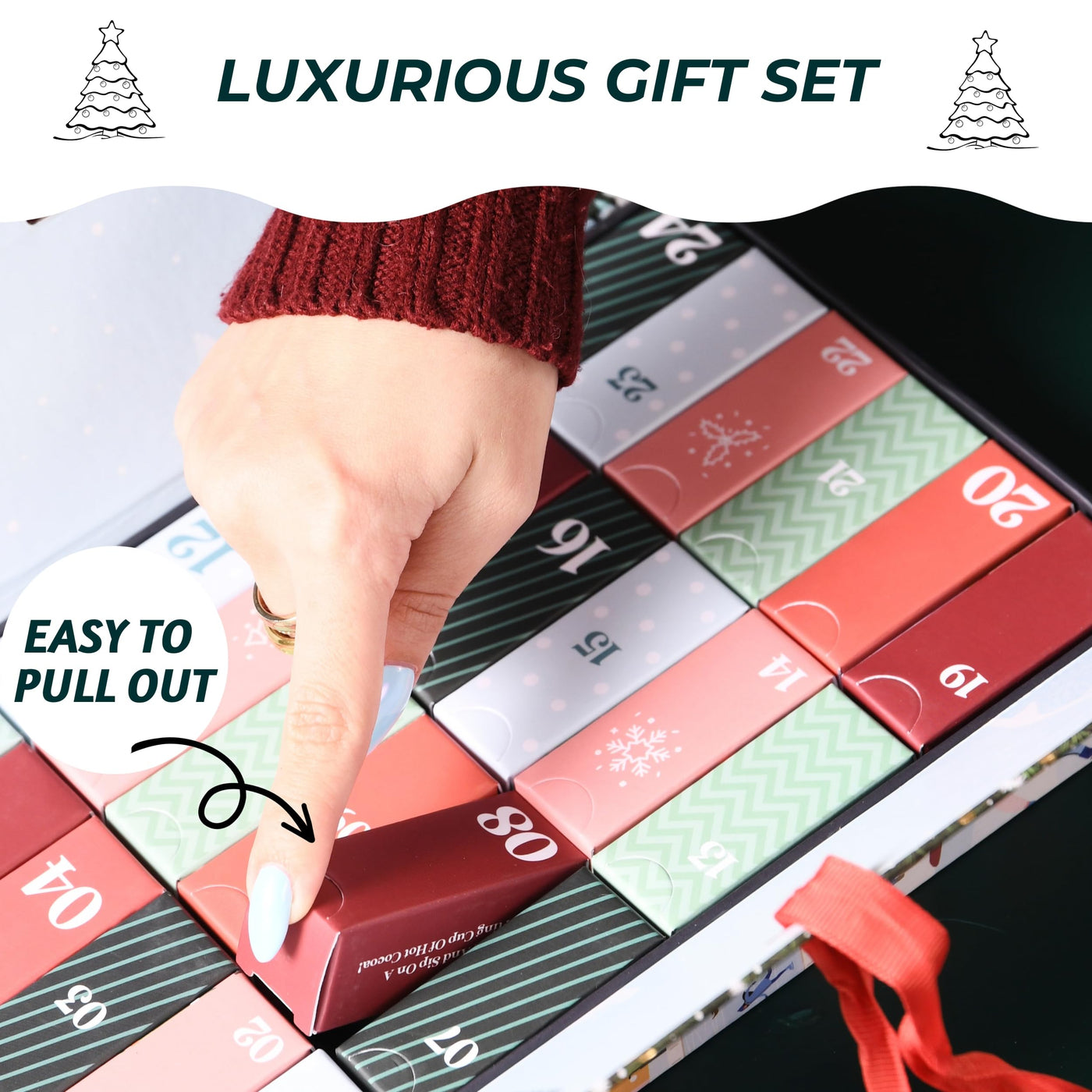 Elevate Your Anticipation This Holiday Season With Our Enchanting Advent Calendar For Personal Care Indulgences. This Meticulously Crafted Treasure Trove Is Designed To Heighten Your Festive Joy, Ensuring Every Day Leading Up To The Celebration Is Brimming With Delightful Surprises And Aromatic Delights. Unveil The Magic Of Each Day With Our Carefully Curated Assortment Of Unique Fragrances, Destined To Immerse You In A Sensory Journey Like No Other. From Soothing Essential Oils To Invigorating Scents, Each Day'S Surprise Opens A Door To An Exquisite Olfactory Experience. The Eye-Catching Design Of The Calendar Adds A Touch Of Elegance To Your Holiday Decor, Making It Not Just A Functional Delight But A Charming Ornament As Well. Its Intricate Details And Thoughtfully Chosen Color Palette Stand As A Testament To The Care Put Into Every Aspect Of This Festive Gem. Within This Captivating Design Lies An Array Of Surprises That Promise To Enliven Your Senses And Pamper Your Soul. Explore Hair Care Secrets, Dive Into The World Of Crafts With Aromatic Inspiration, Discover New Perfumes To Match Your Holiday Moods, And Even Find Hidden Gems For Rejuvenating Your Living Spaces. The Journey Of Self-Care And Indulgence Takes On A New Meaning As You Explore Each Compartment, Unveiling A World Of Scented Creativity And Personal Care Tailored To Your Desires.