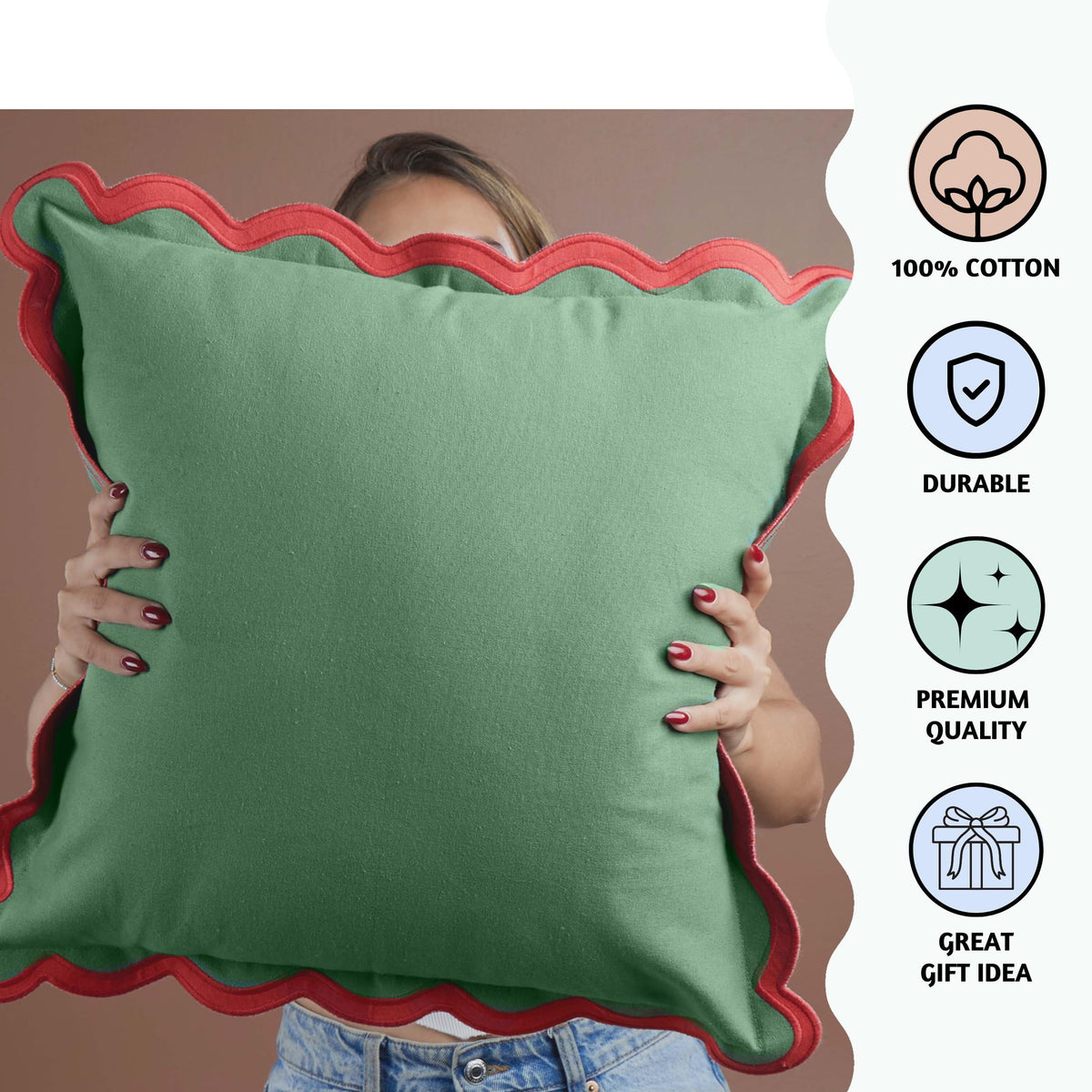 'Enhance The Charm And Style Of Your Living Space With These Cushion Covers. This Set Of Two 20 X 20 Pillow Covers Is Crafted With Meticulous Attention To Detail, Using 100% Cotton For A Soft And Luxurious Feel. With Their Unique Scallop Design, These Throw Pillow Covers Are Sure To Catch The Eye And Become A Focal Point Of Your Home Decor. The Intricate Scallop Pattern Adds A Touch Of Elegance And Sophistication To Any Room, Creating A Boho-Inspired Ambiance That Is Both Trendy And Timeless. Not Only Do These Pillow Covers Elevate The Aesthetics Of Your Living Room, But They Also Provide Exceptional Comfort And Support. The High-Quality Cotton Material Ensures Durability, Making These Covers Perfect For Everyday Use. Whether You'Re Relaxing On The Couch, Reading A Book, Or Entertaining Guests, These Cushion Covers Offer A Cozy And Inviting Seating Experience. Designed To Fit Standard 18 X 18-Inch Cushions, These Square Pillow Covers Are Easy To Install And Remove, Thanks To The Convenient Hidden Zipper Closure. This Allows For Hassle-Free Maintenance And Cleaning, Making Them A Practical Choice For Busy Households. The Versatility Of These Boho Pillow Covers Allows You To Seamlessly Incorporate Them Into Various Interior Design Styles. Whether You Prefer A Rustic, Farmhouse-Inspired Decor Or A Modern, Look, They Effortlessly Complement Any Setting. ''