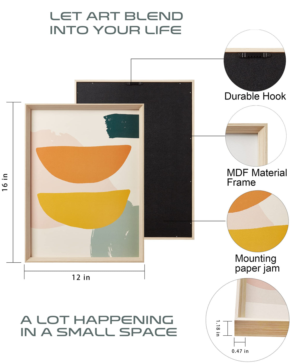 Framed Boho Wall Art For Bedroom,Abstract Canvas Wall Decor,12X16In Minimalist High Framed Wood Design Prints For Living Room,Ba