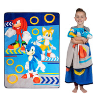 Sonic The Hedgehog, Knuckles And Tails From The Popular Sonic Franchise Bring Their Fast-Paced Flair To This Soft And Cozy Sonic Plush Blanket. With Its Bold Colors And Gold Rings, The 'Sonic Speed Stars' Theme Is Sure To Be A Game Winner With Young Sega Fans.Kids Can Enjoy Snuggling Into This Soft And Stylish Blanket At Naptime, Bedtime, Or Any Time They Want To Feel Cozy. Crafted From High-Quality Micro Raschel With A Super Soft Feel, This Blanket Features Sonic Character Imagery Against A Bold Blue Backdrop. Lightweight And Easy To Carry, It Makes A Cuddly Companion For Camp Outs And Sleepovers.Colorful High-Energy Characters Continue To Attract New Generations Of Sega Fans To The World Of Sonic The Hedgehog. Now Kids Can Bring The Fun And Adventure Home With This Cute And Cuddly Sonic Themed Blanket.