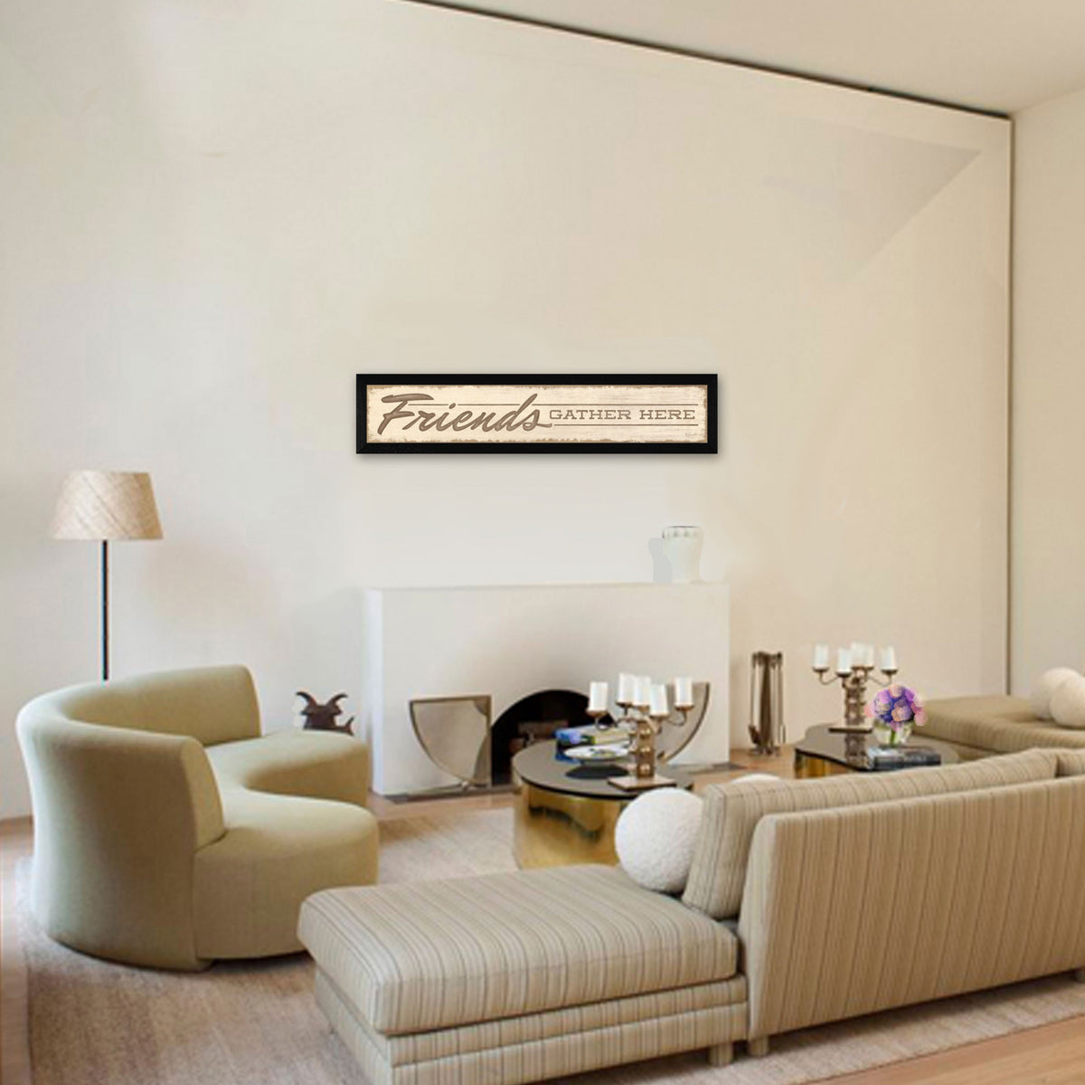 This friend a gather here 1 black framed print wall art will add a beautiful decorative accent to your decor. This print is a visual artistic expression that allows you to decorate your space in restyle. Made for you on paper, this hanging accent will be a trendy and fashionable way to dress your walls. Adding this hanging wall art to make your room feel more finished and attractive. Utilize this opportunity to create a focal point in the room with this wonderful room. wall decor option. 8. 'H x 38' W x 1' D