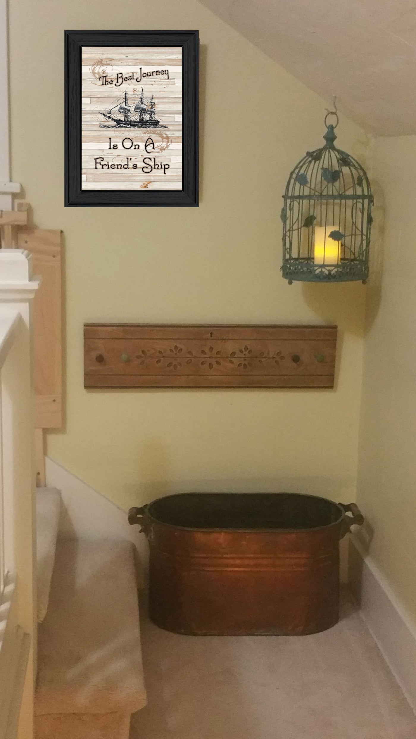 Bring some sizzle to your space with this eye-catching friendship journey 1 black framed print wall art. This transportation inspired wall art features a ship icon and will bring a refreshing look and perspective to your wall. This print is a visual expression that allows you to decorate your space in style. Reproduced for you on paper, this hanging accent will be a trendy and fashionable way to dress your walls. This hanging wall art to make your room feel more finished and attractive. Instagram. antly liven up your space with this art that brings color and dimension to your walls. 15' H x 11' W x 1' D