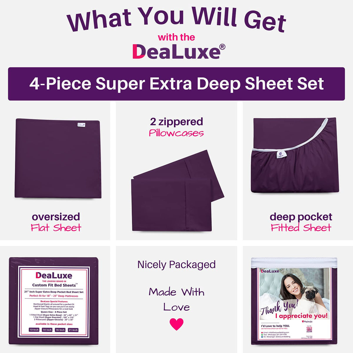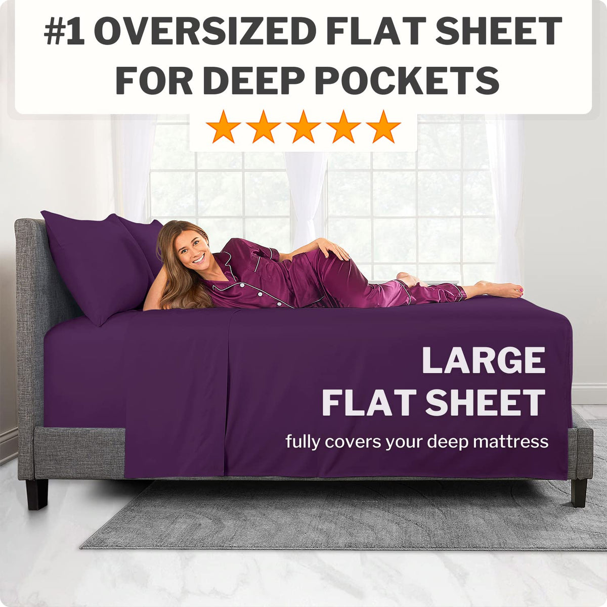 Full Size Sheet Sets - Deep Pocket Full Size Sheets Set - 4 Piece Set With 21 Extra Deep Pocket Fitted Sheet, Oversized Flat Sheet, 2 Zipper Closure Pillowcases - Purple (Royal Grape)