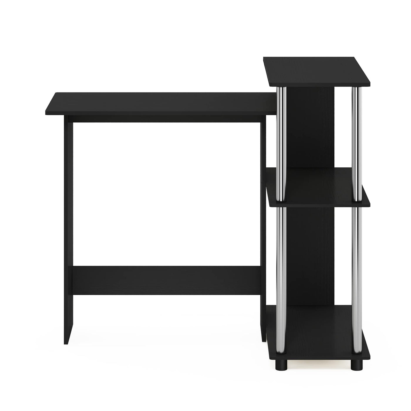 Furinno Abbott Corner Computer Desk with Bookshelf, Americano/Chrome