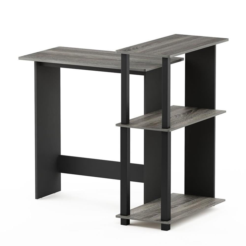Furinno Abbott Corner Computer Desk With Bookshelf, French Oak Grey/Black